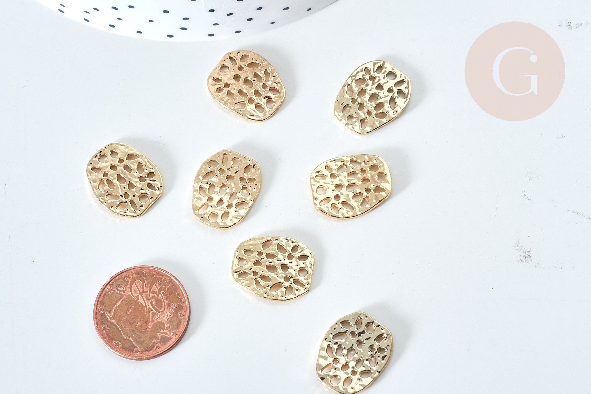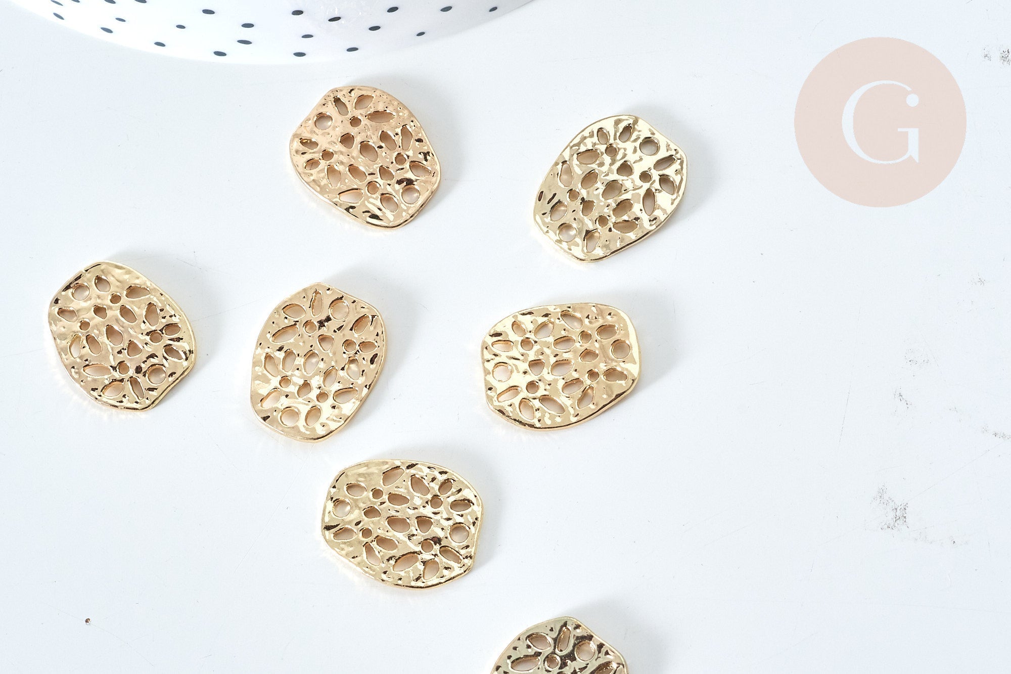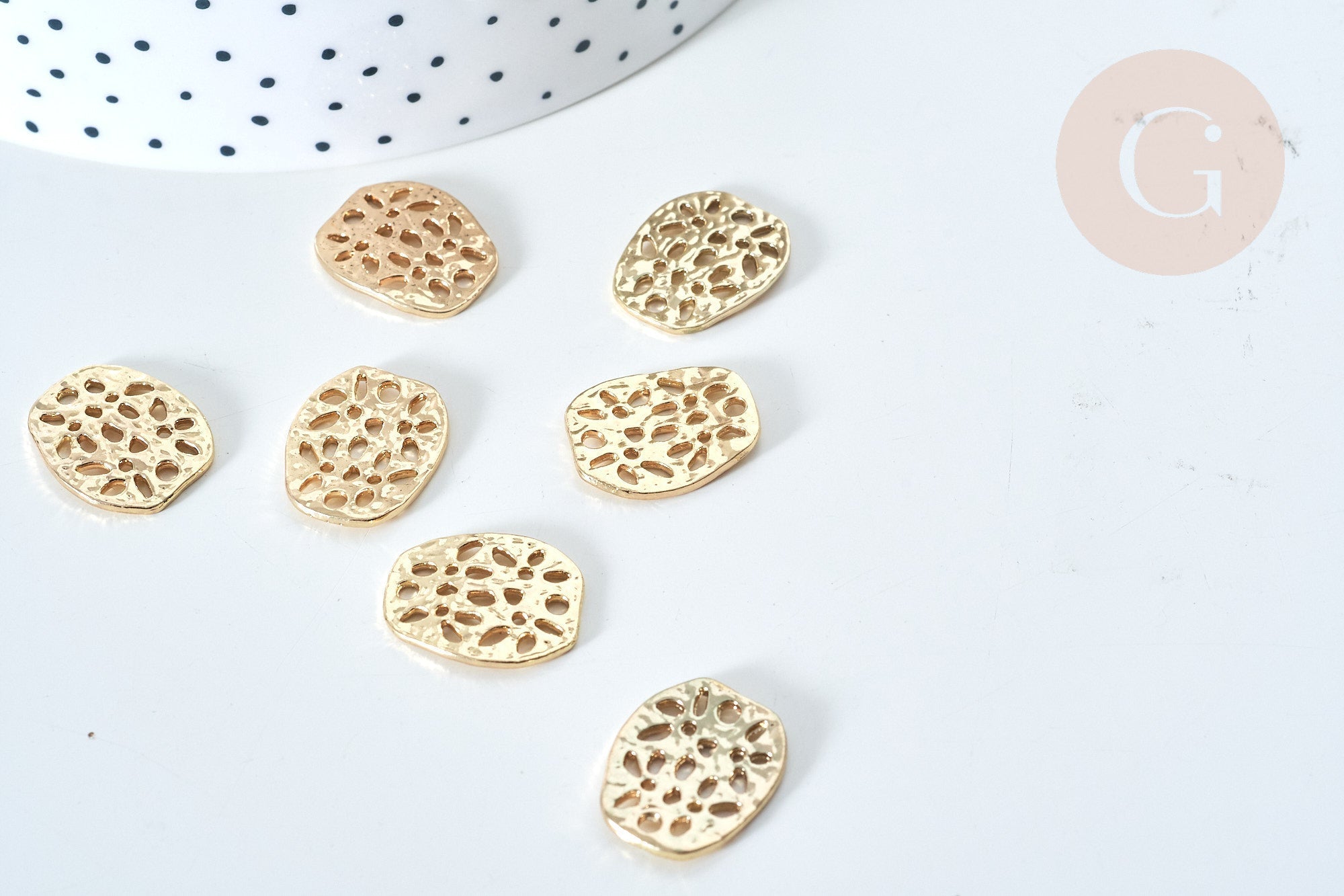 Colgante con estampado de filigrana ovalada de zamac dorado claro 18 mm, creación de joyería colgante fina y ligera, x 5 G7859