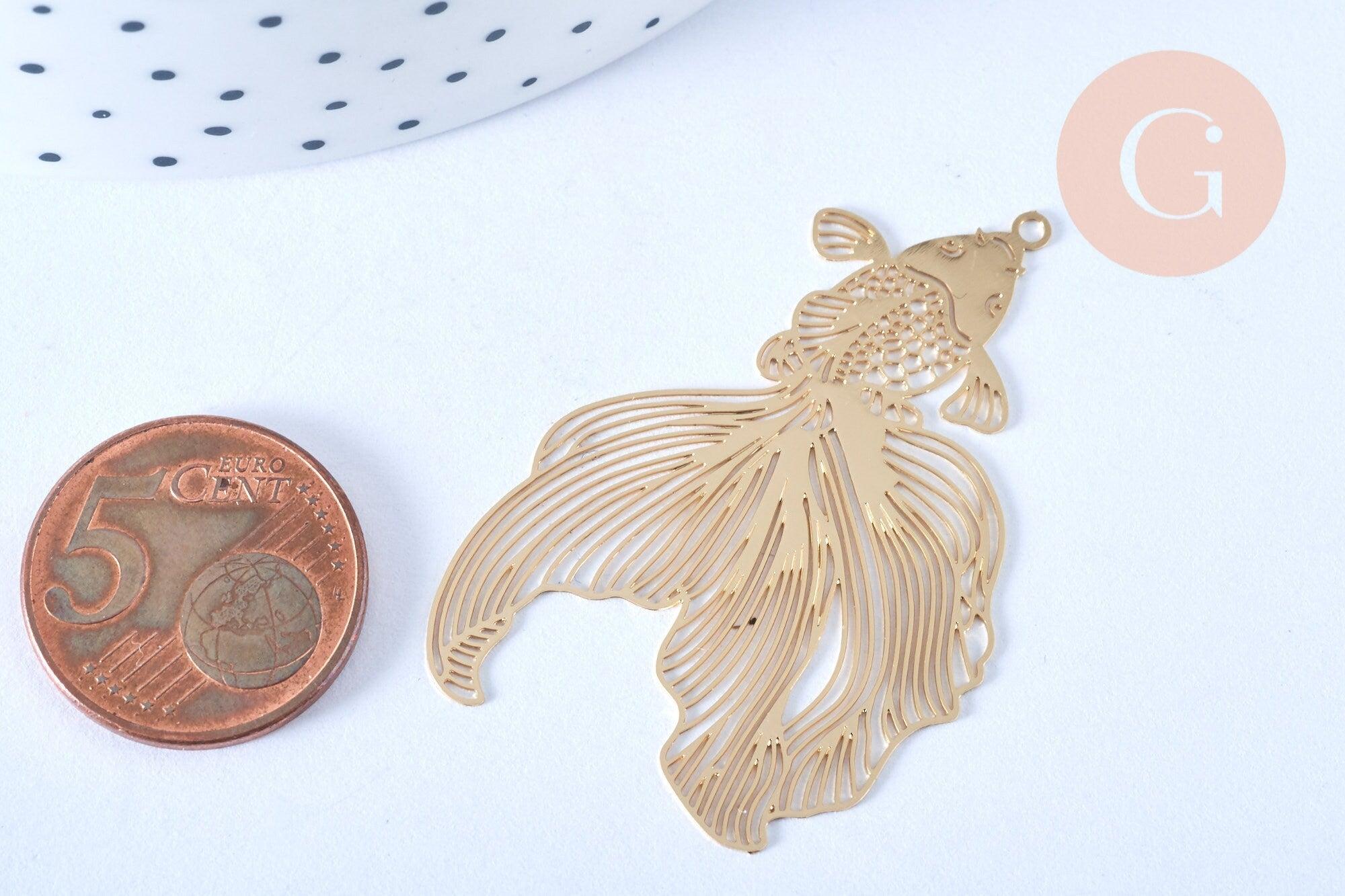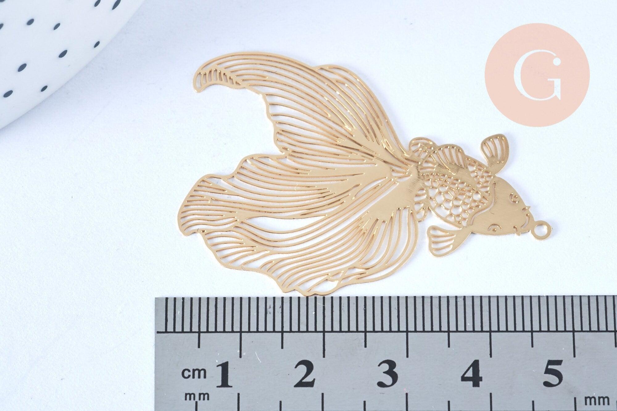 Colgante con filigrana de pez japonés en latón dorado claro Colgante muy fino y ligero para creación de joyas, Juego de 2,49 x 31 mm