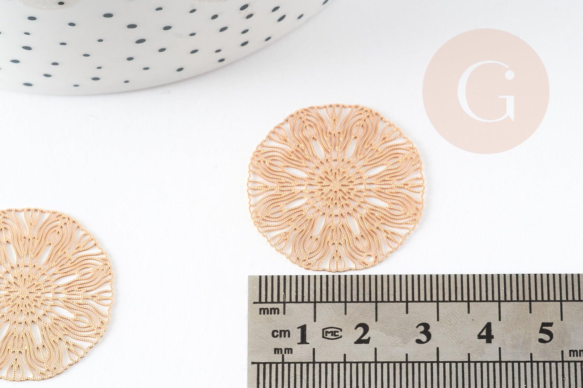 Colgante redondo con estampado de filigrana flor de latón dorado 30 mm, colgante muy fino y ligero para la creación de joyas DIY x2 G9205