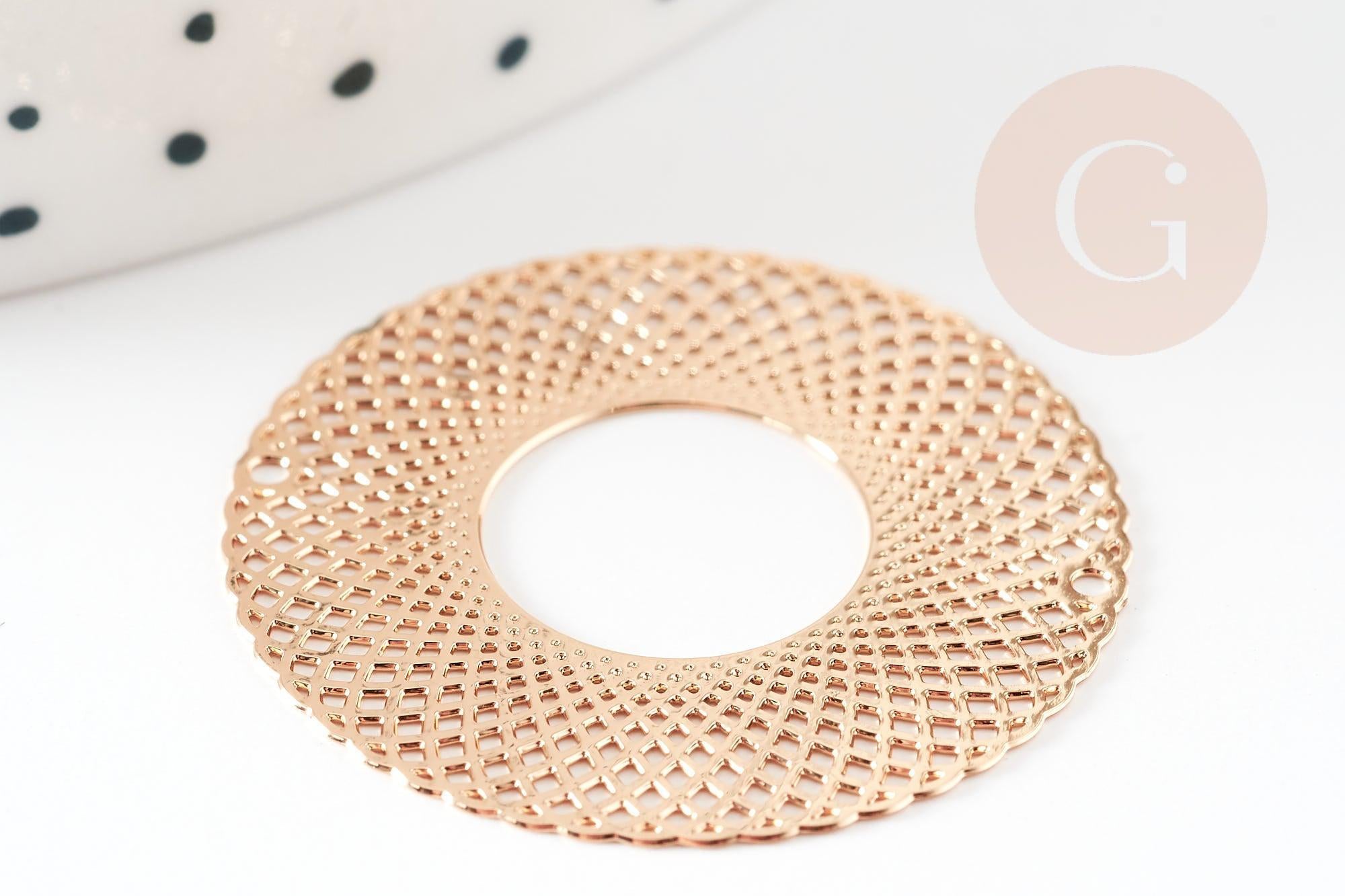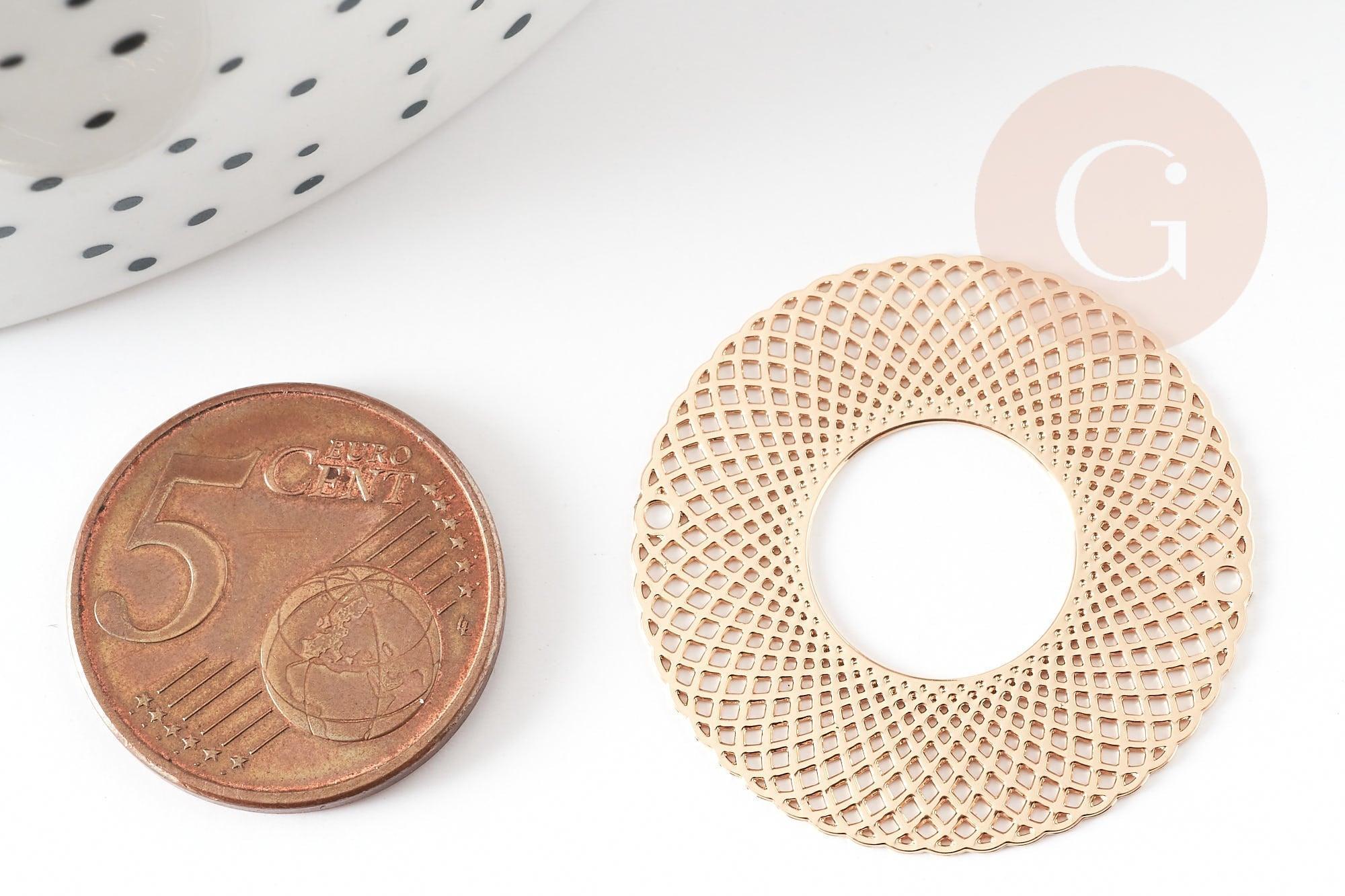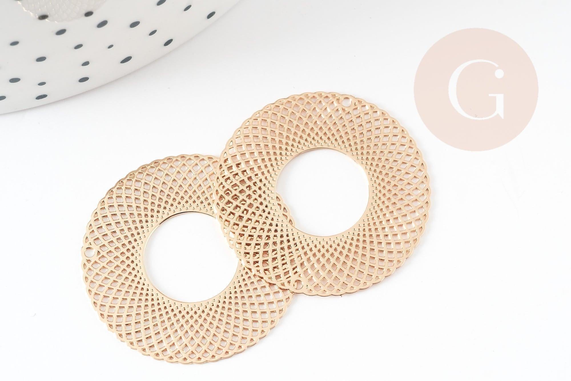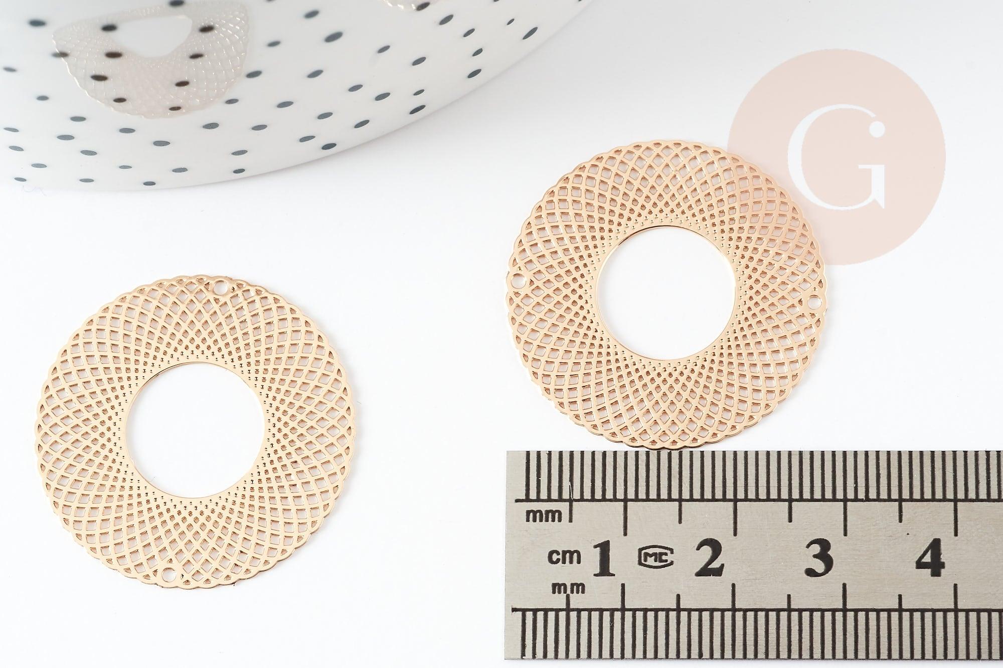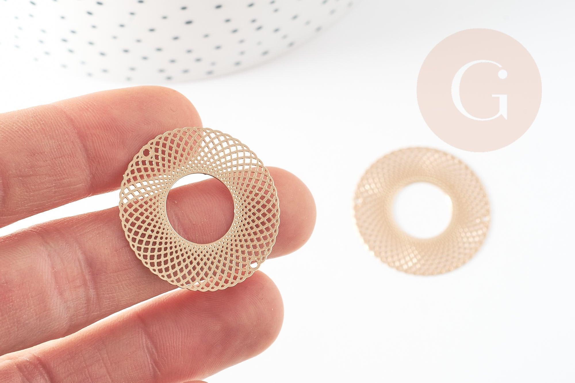 Colgante redondo con estampado de filigrana en latón bañado en oro, Colgante muy fino y ligero para creación de joyas, 30 mm, Juego de 2