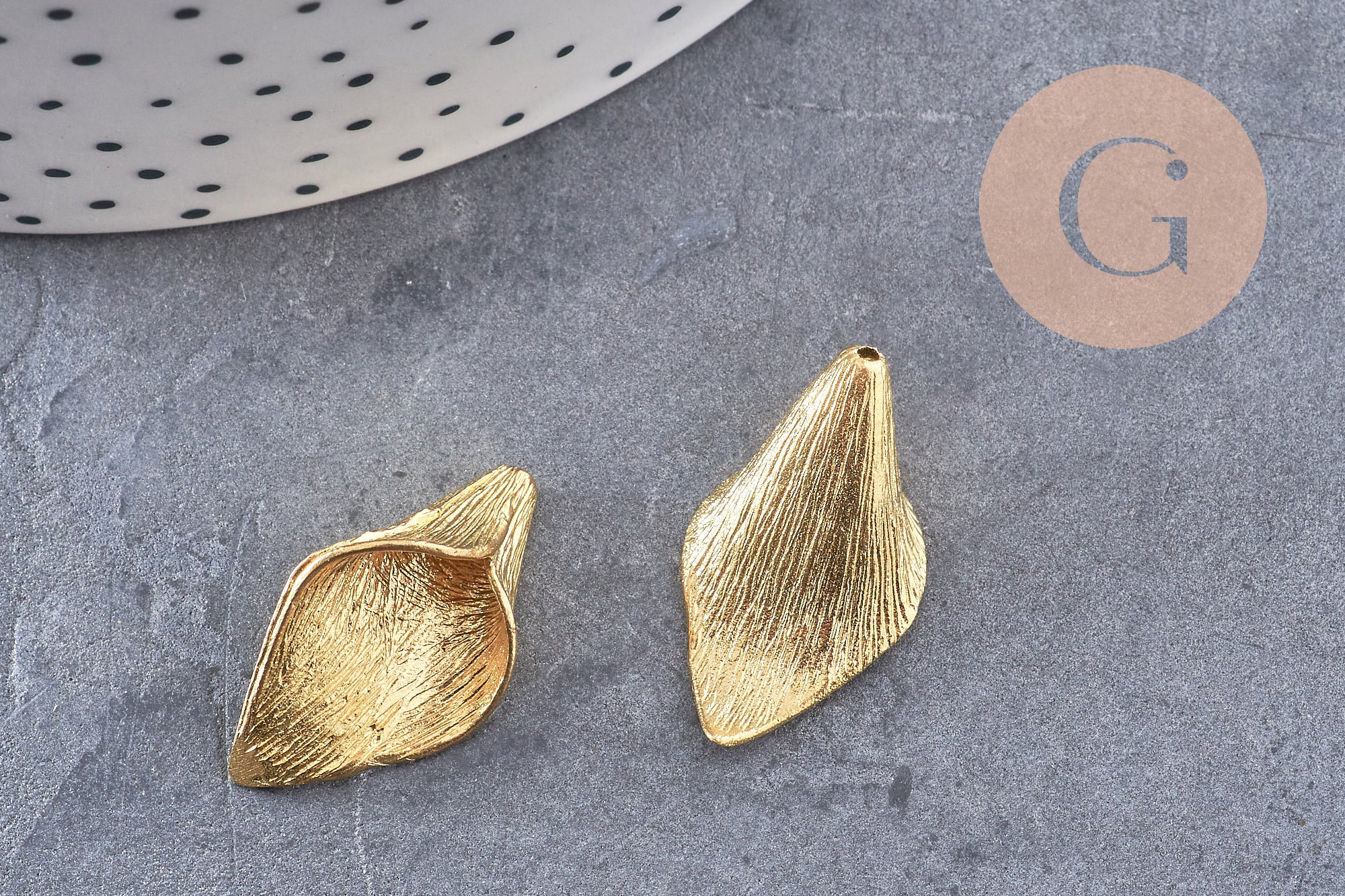 Colgante de hoja de latón crudo, dije de latón crudo, colgante de hoja, joyería, colgante de latón crudo, 25 mm, x2 (G3085)