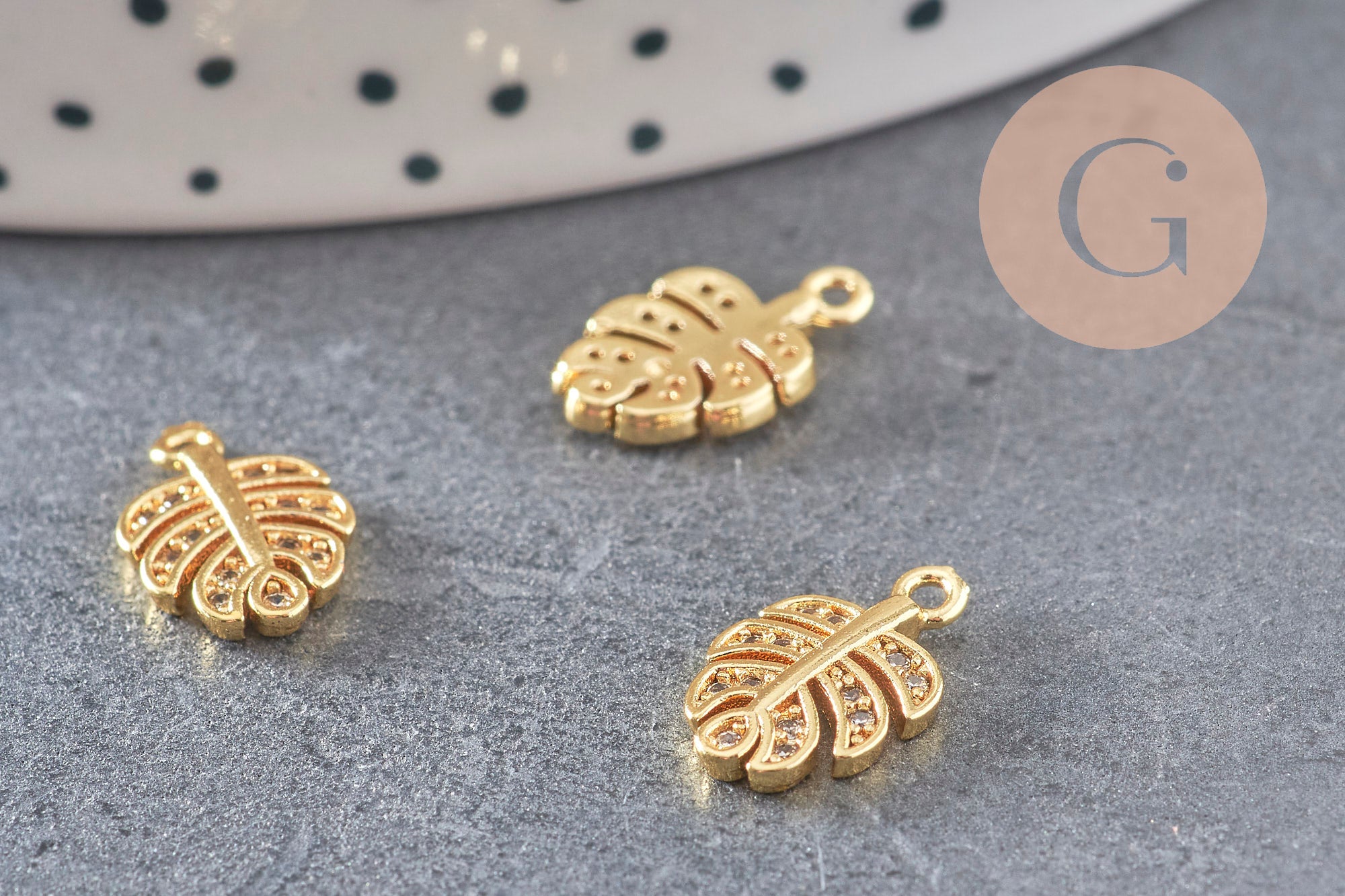 Para crear magníficos collares, pendientes y pulseras, adopte estas hojas de monstera de latón dorado decoradas con circonitas blancas.