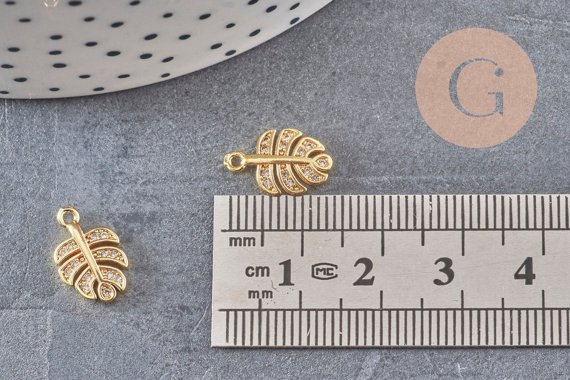 Colgante de hoja de circonio de latón dorado, joyería de cristal de creación de encanto de hoja de monstera, 2,14 mm