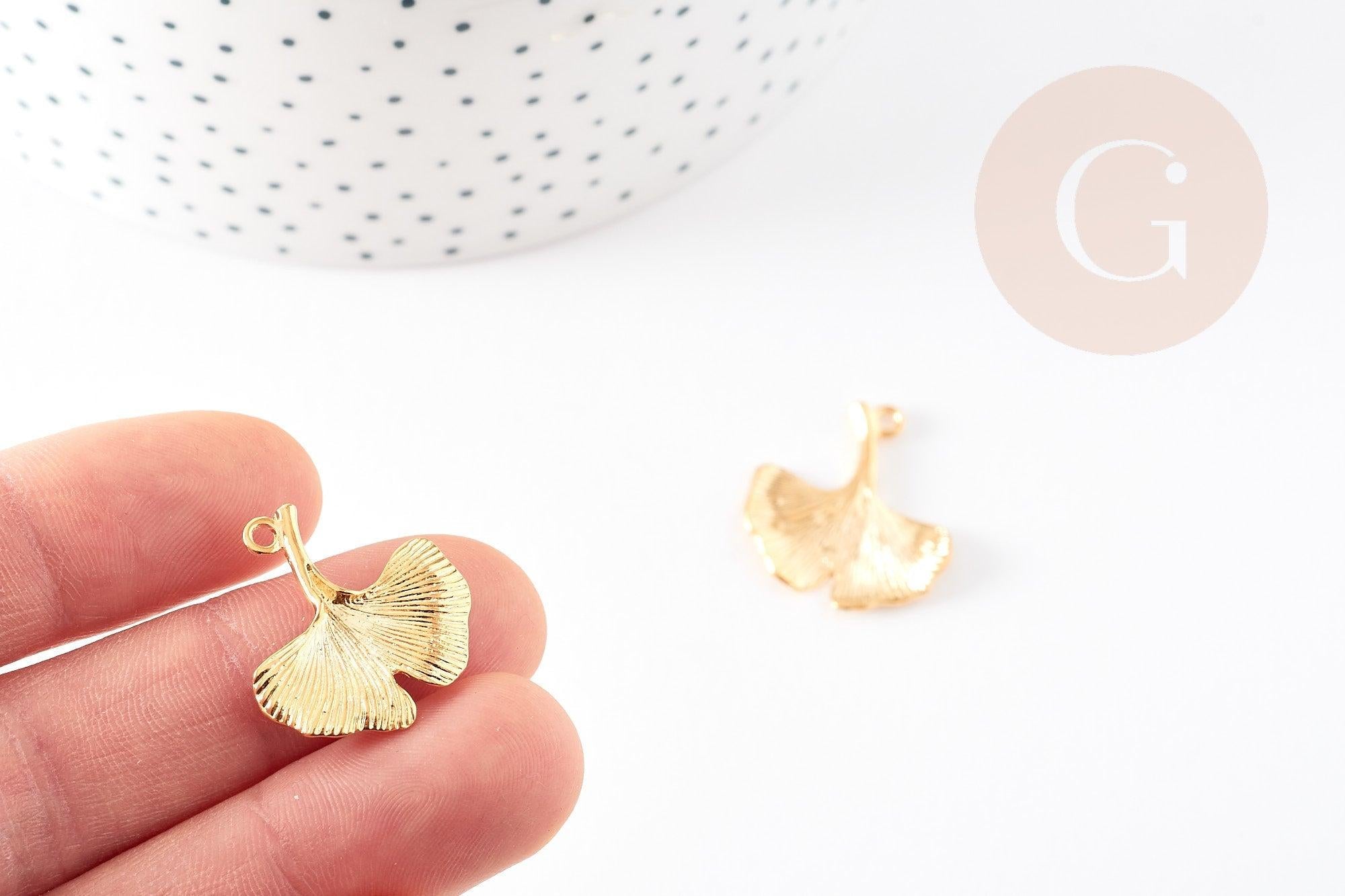Colgante de hoja de gingko de latón dorado de 18 quilates 22 mm, dije de creación de joyería dorada x1 G4848