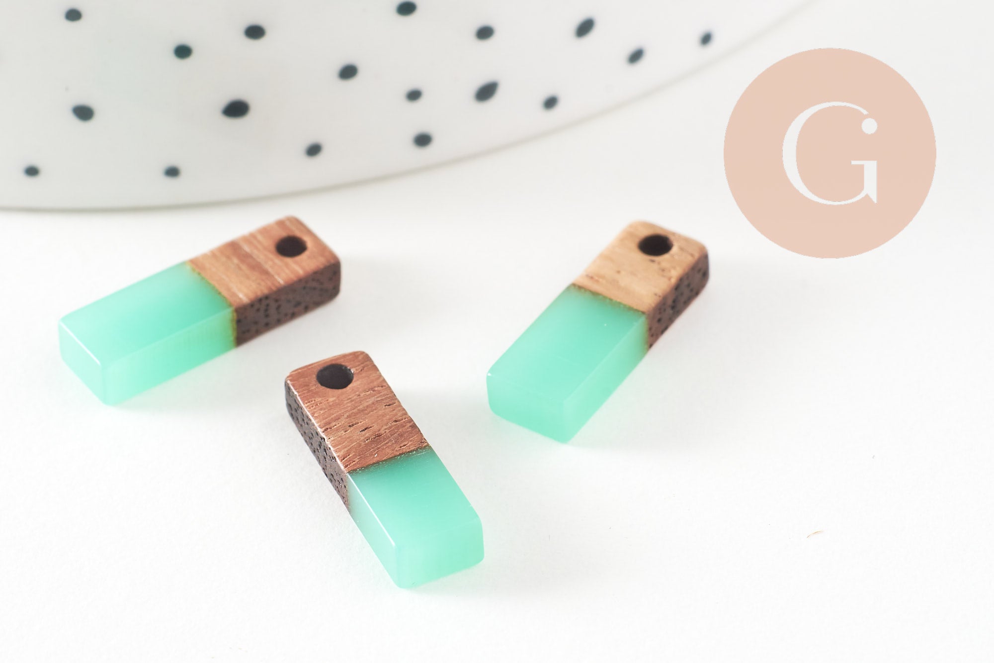 colgante de gota de madera de resina rectangular azul, madera natural, cuenta de madera, cuenta geométrica, creación de joyería de madera, 17 mm, x5, G2618