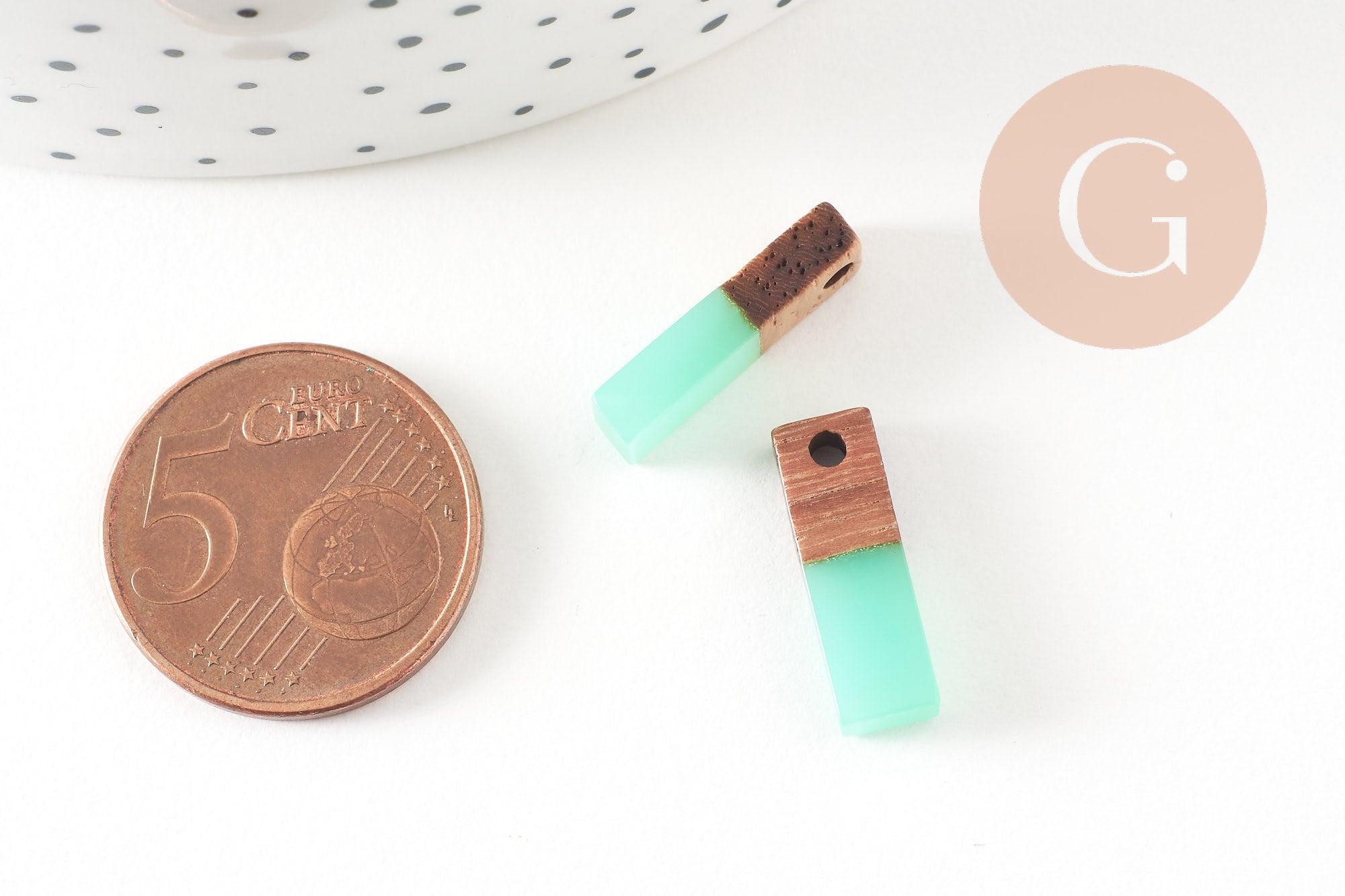 cuenta de gota de madera, resina rectangular azul, madera natural, cuenta de madera, cuenta geométrica, cuenta rectangular, creación de joyería de madera, 17 mm, los 5