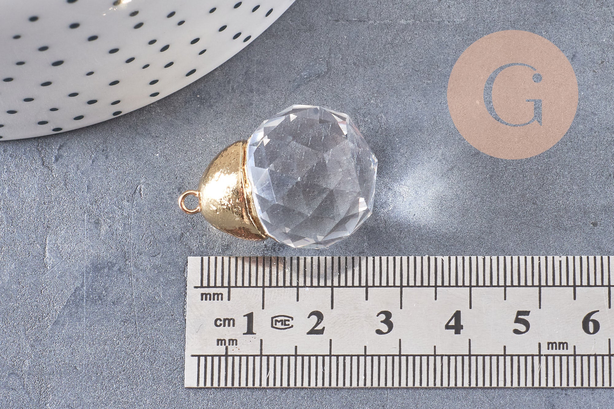 Déjate seducir por este bonito colgante "manzana de pan" de cristal transparente, rodeado de latón bañado en oro.