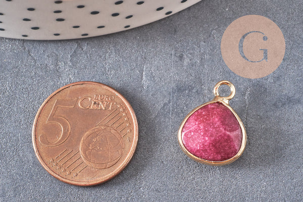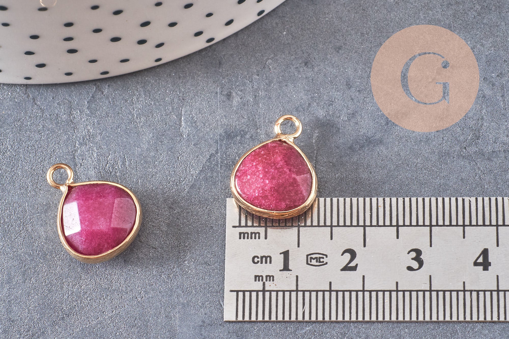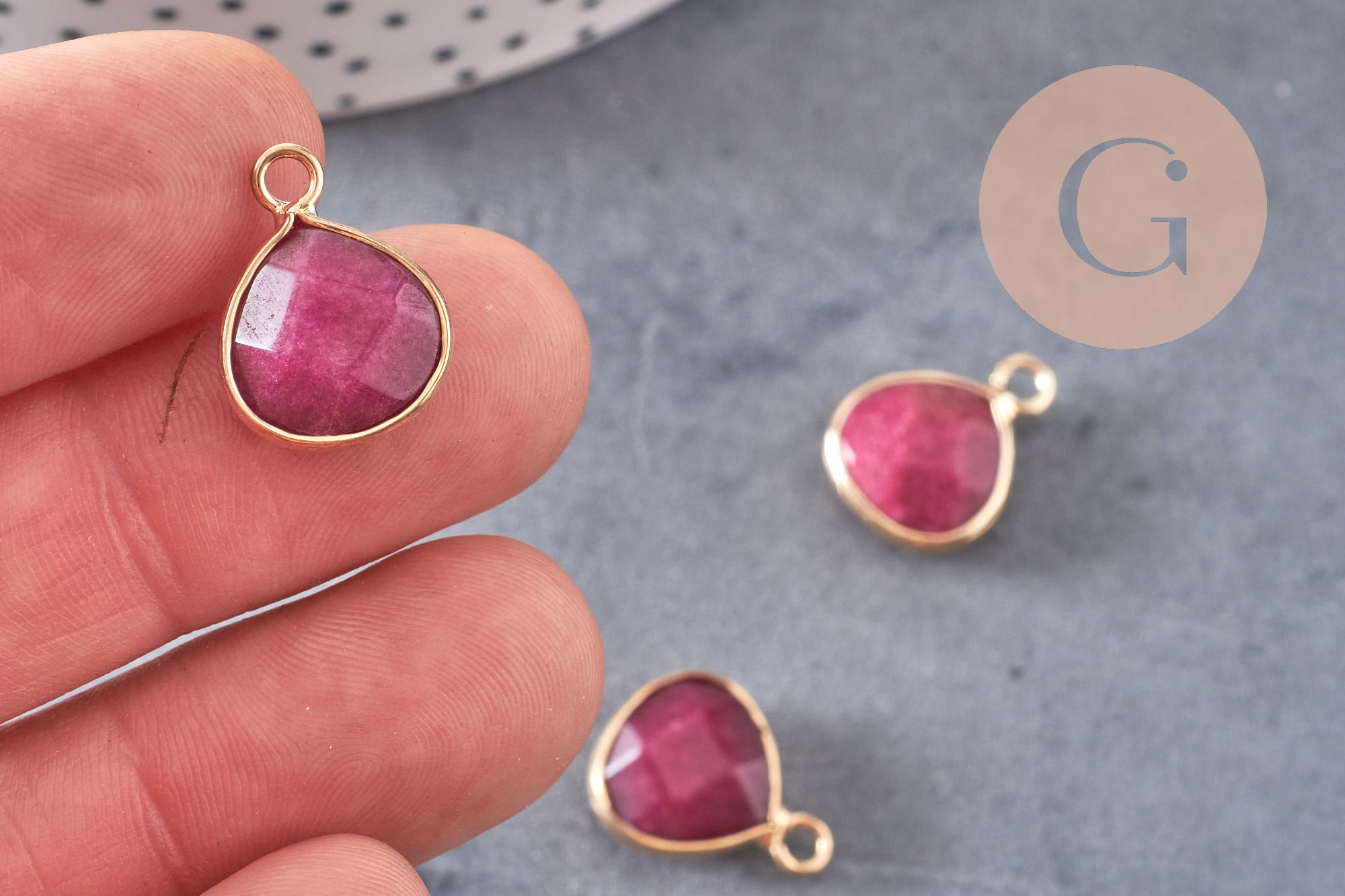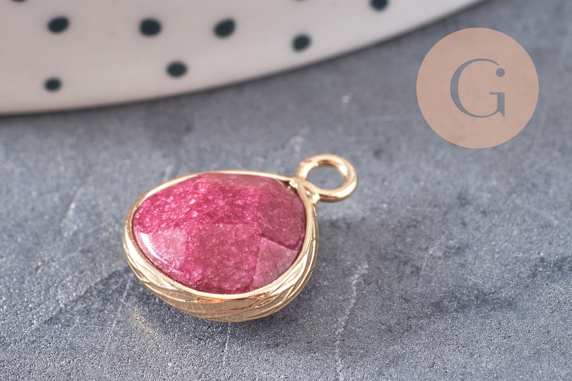 Déjate seducir por este pequeño colgante de jade teñido con su soporte dorado en forma de gota.