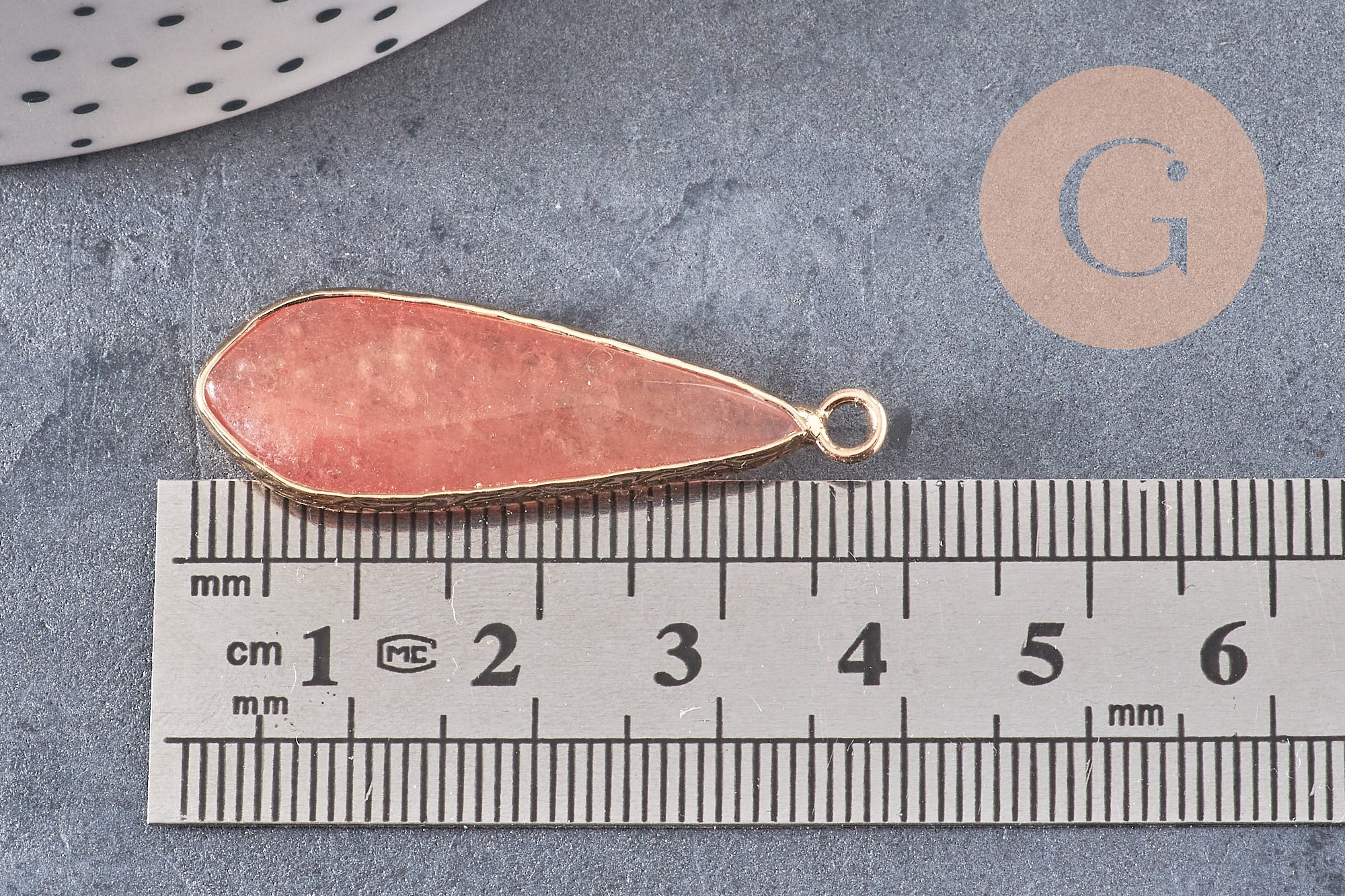 Colgante gota de jade rosa facetado de oro, colgante de jade, colgante de piedra, jade natural, jade teñido de rosa, 31 mm, x1 G1774