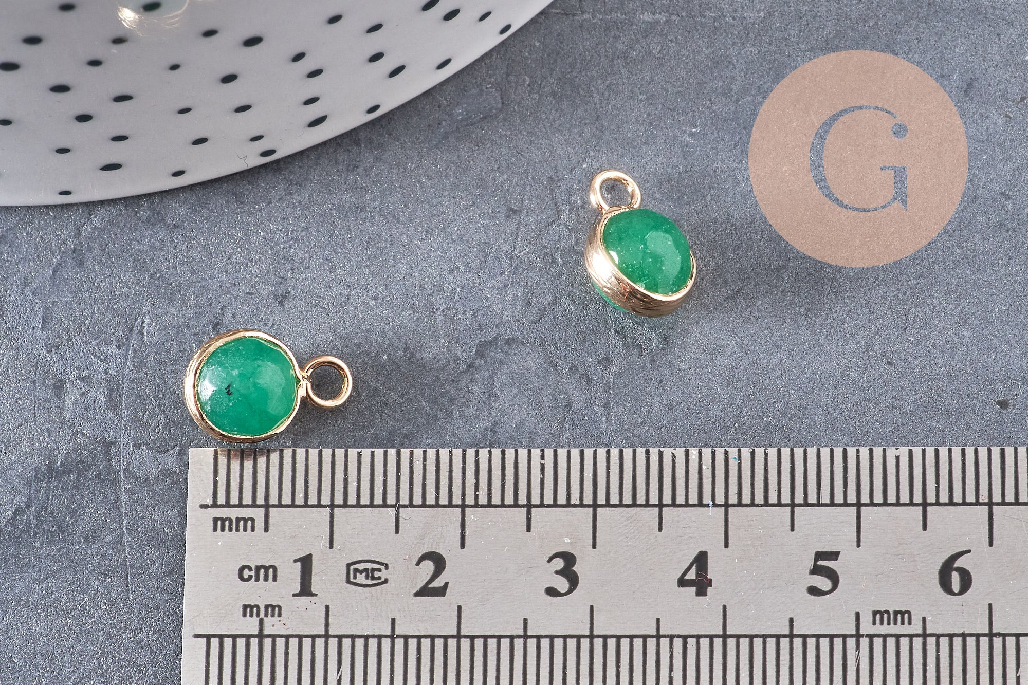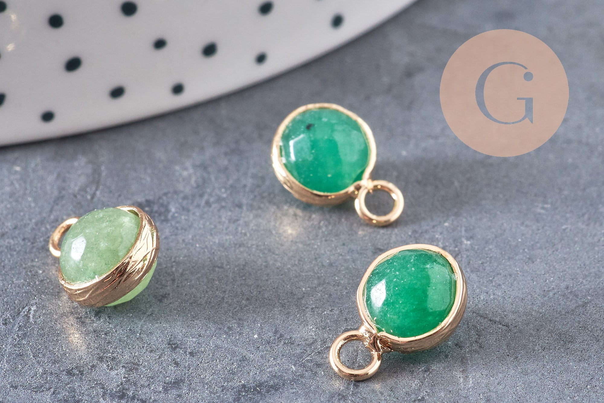 Pendentif goutte jade vert doré facettes,pendentif pierre,bijou pierre,pendentif pierre,jade vert naturel,pendentif jade,14mm,x2 ,G1614