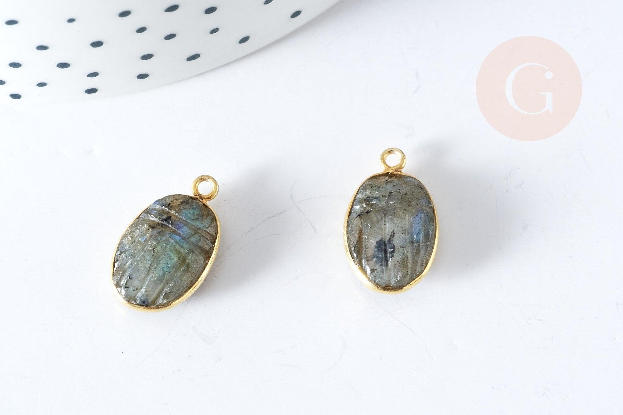 Colgante escarabajo labradorita natural plata 925 oro 18K 19mm, creación de joyería de piedra, x1 G7726