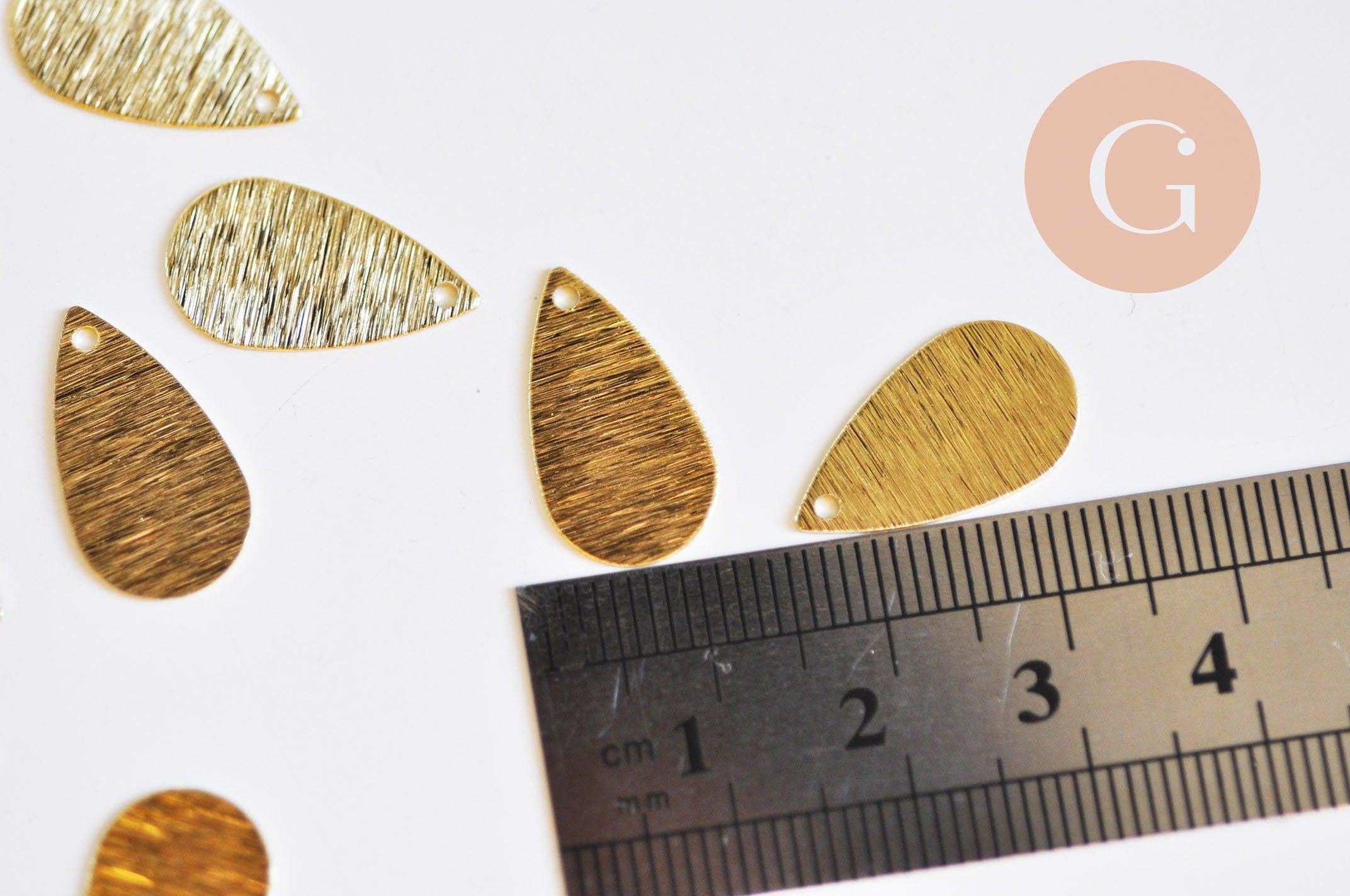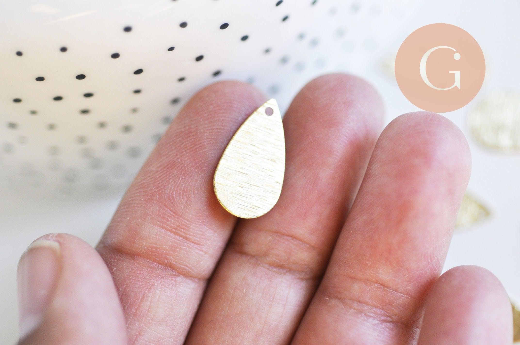 Colgante de gota de latón crudo cepillado de 18 x 10 mm, dije de latón crudo sin níquel para creación de joyas geométricas, x5 (G6324)