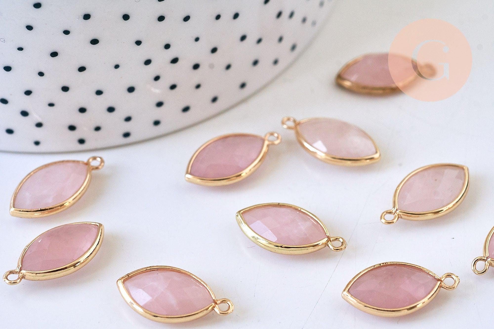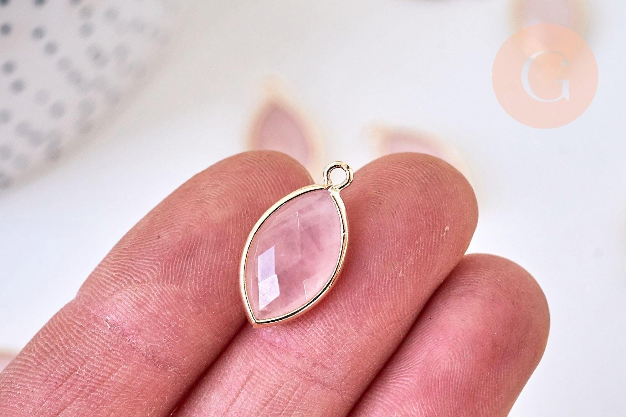 Pendentif goutte quartz rose naturel support laiton doré, pendentif pierre, création bijoux pierre naturelle, 21.5mm, x1 G5591