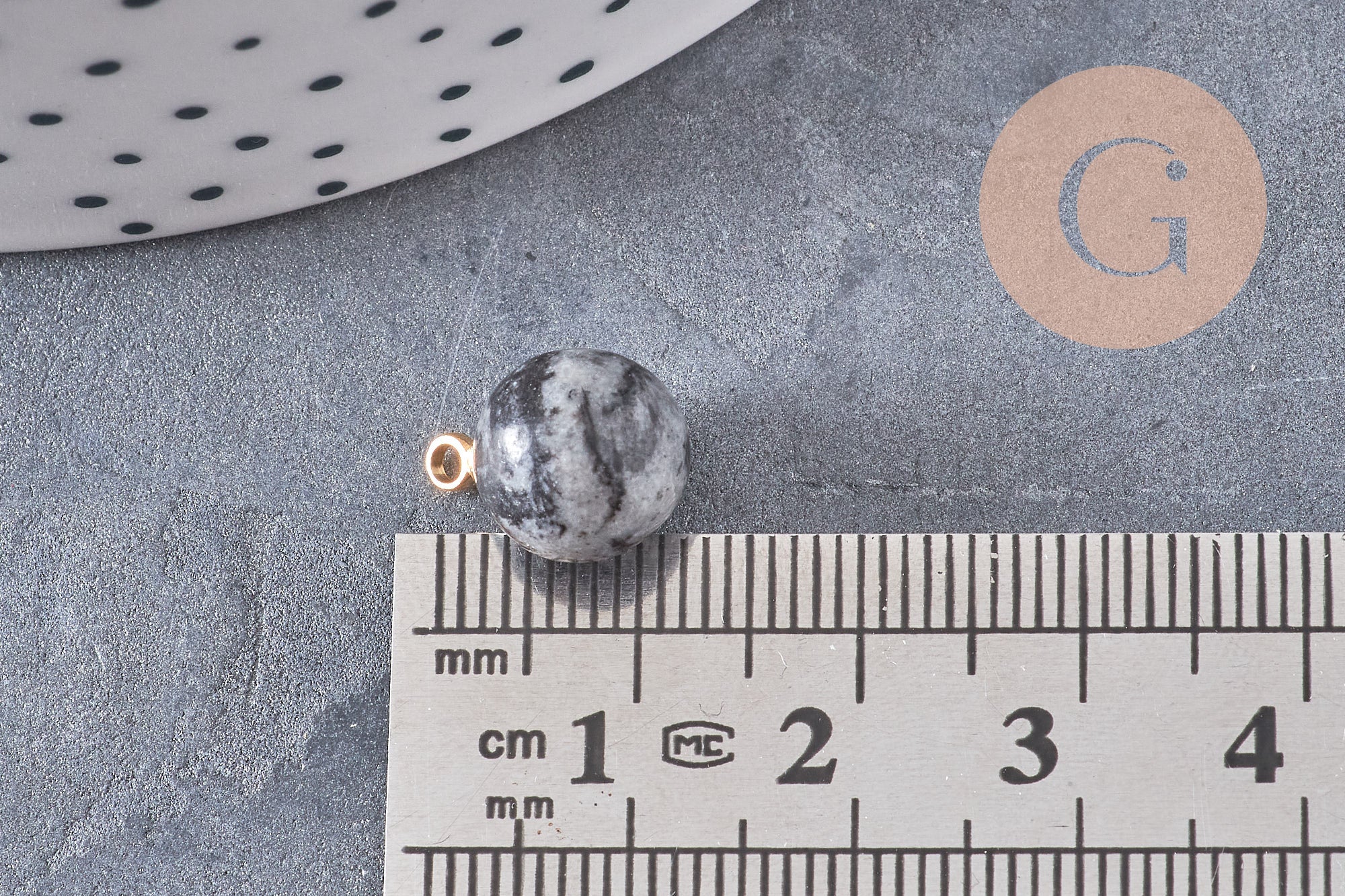 Colgante gota redonda jaspe de piedra de red gris soporte dorado, creación de joyas de piedra natural, colgante de piedra natural, 14 mm, unidad