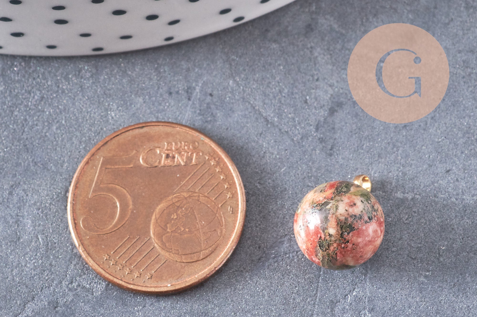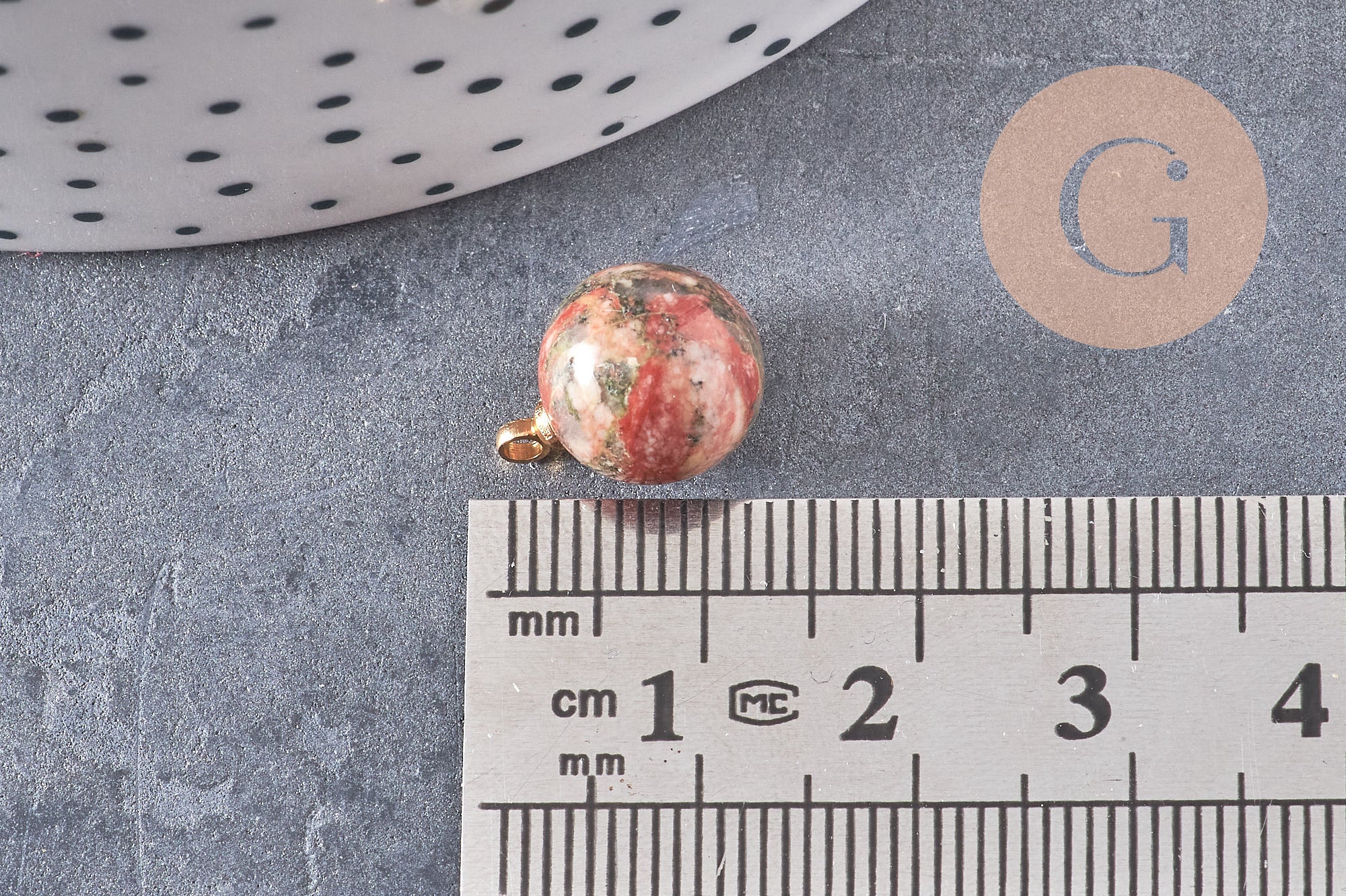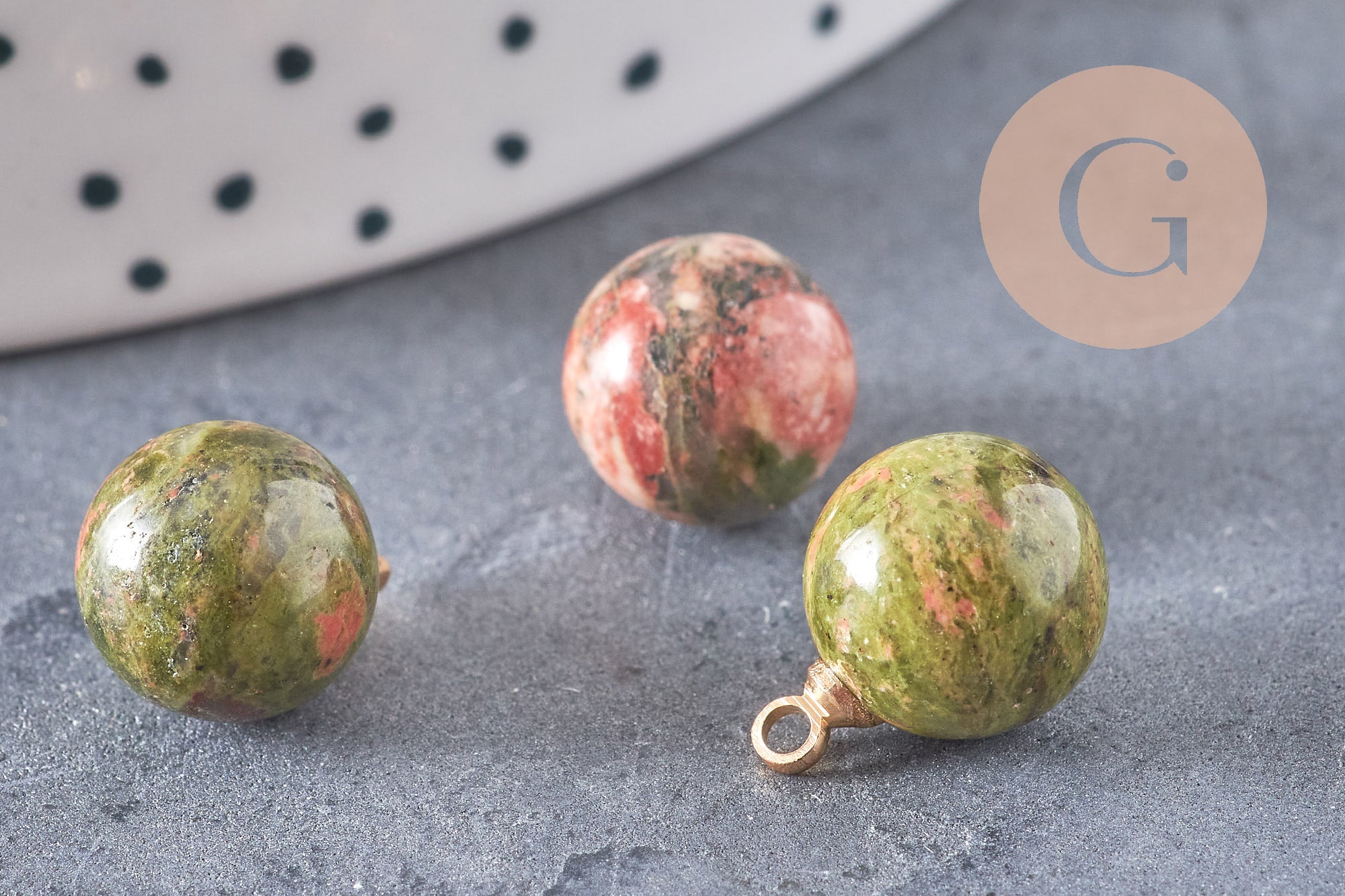 Colgante gota unakita redonda, soporte oro, creación de joyas con piedra natural, colgante piedra natural, 14mm, unidad