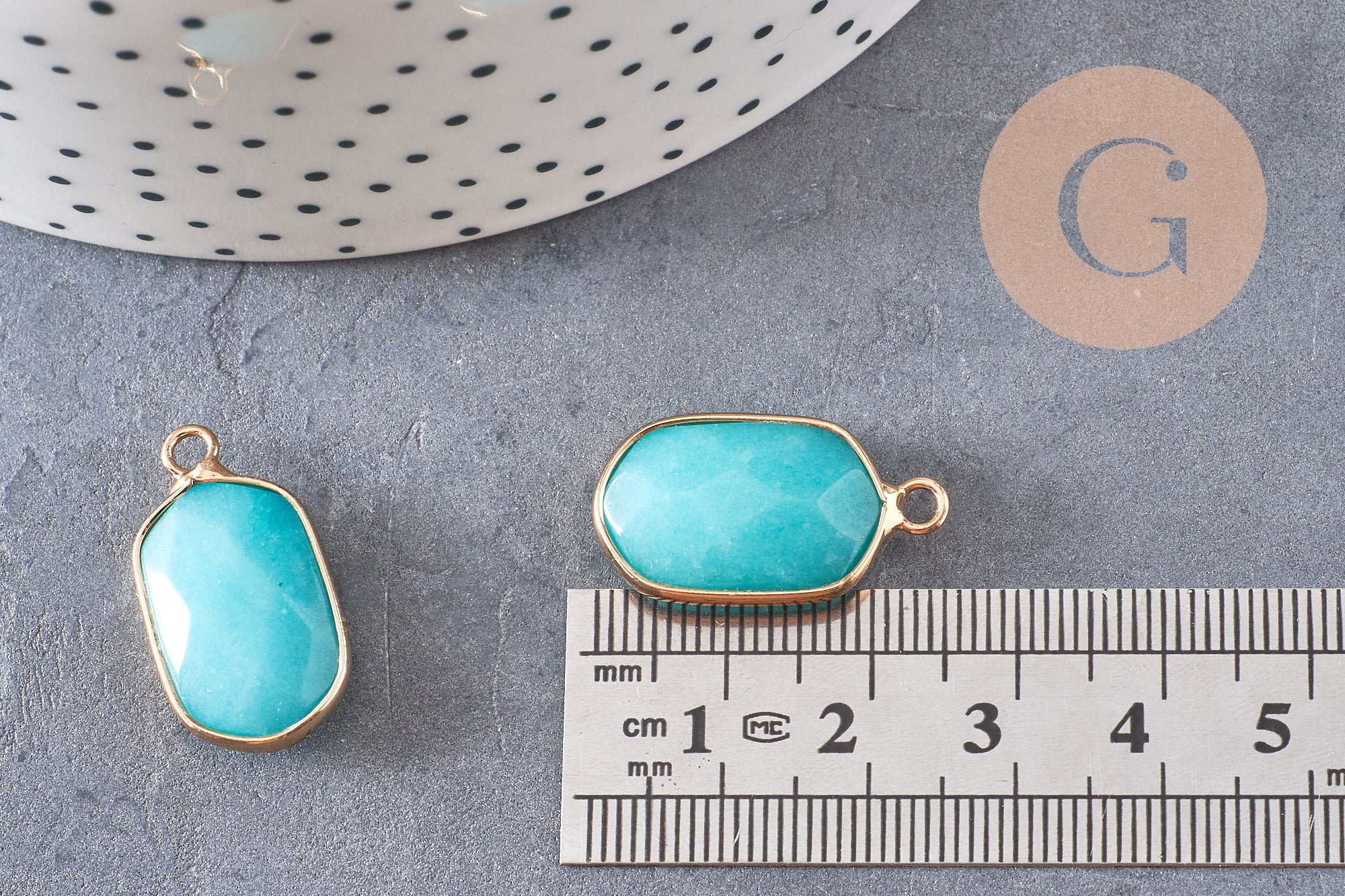 - Materiales: Jade natural teñido de azul turquesa + base de metal chapado en oro sin níquel