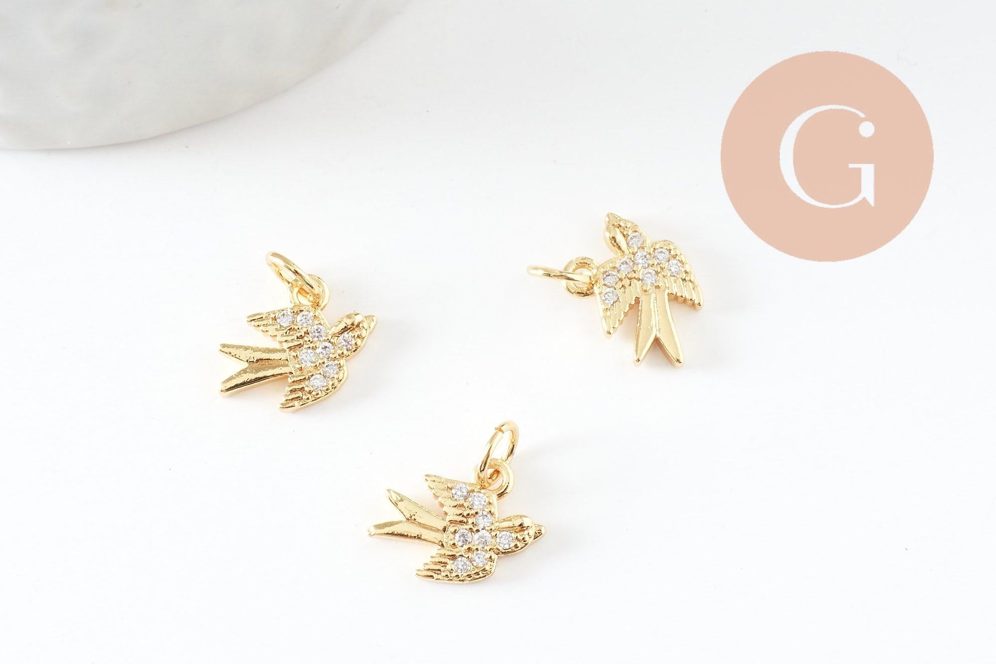 Para combinar poesía y romanticismo en tus joyas DIY, déjate seducir por este colgante de golondrina en latón bañado en oro y circonitas.