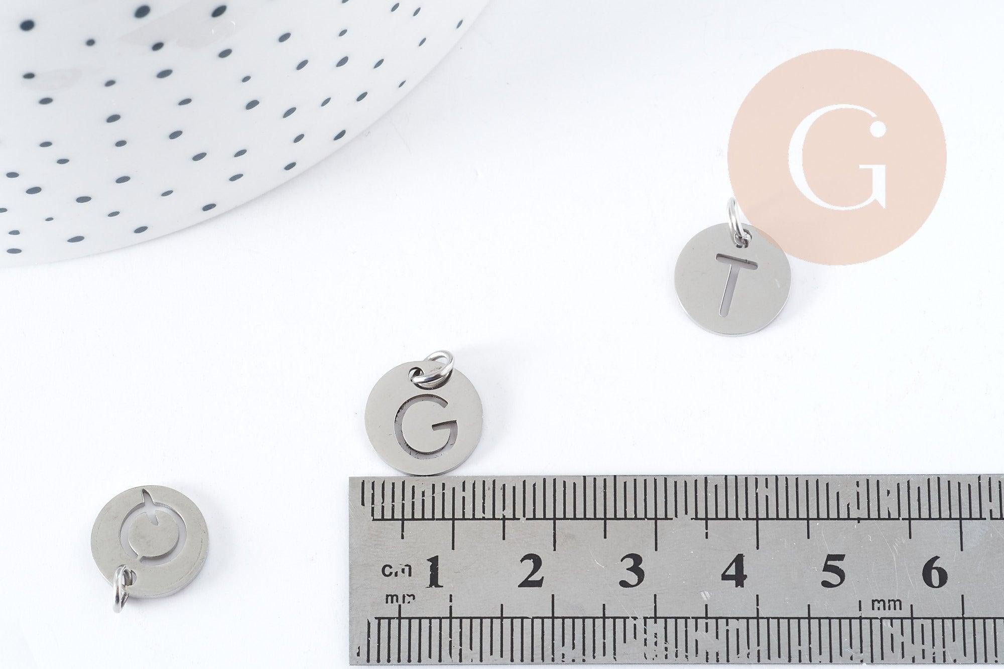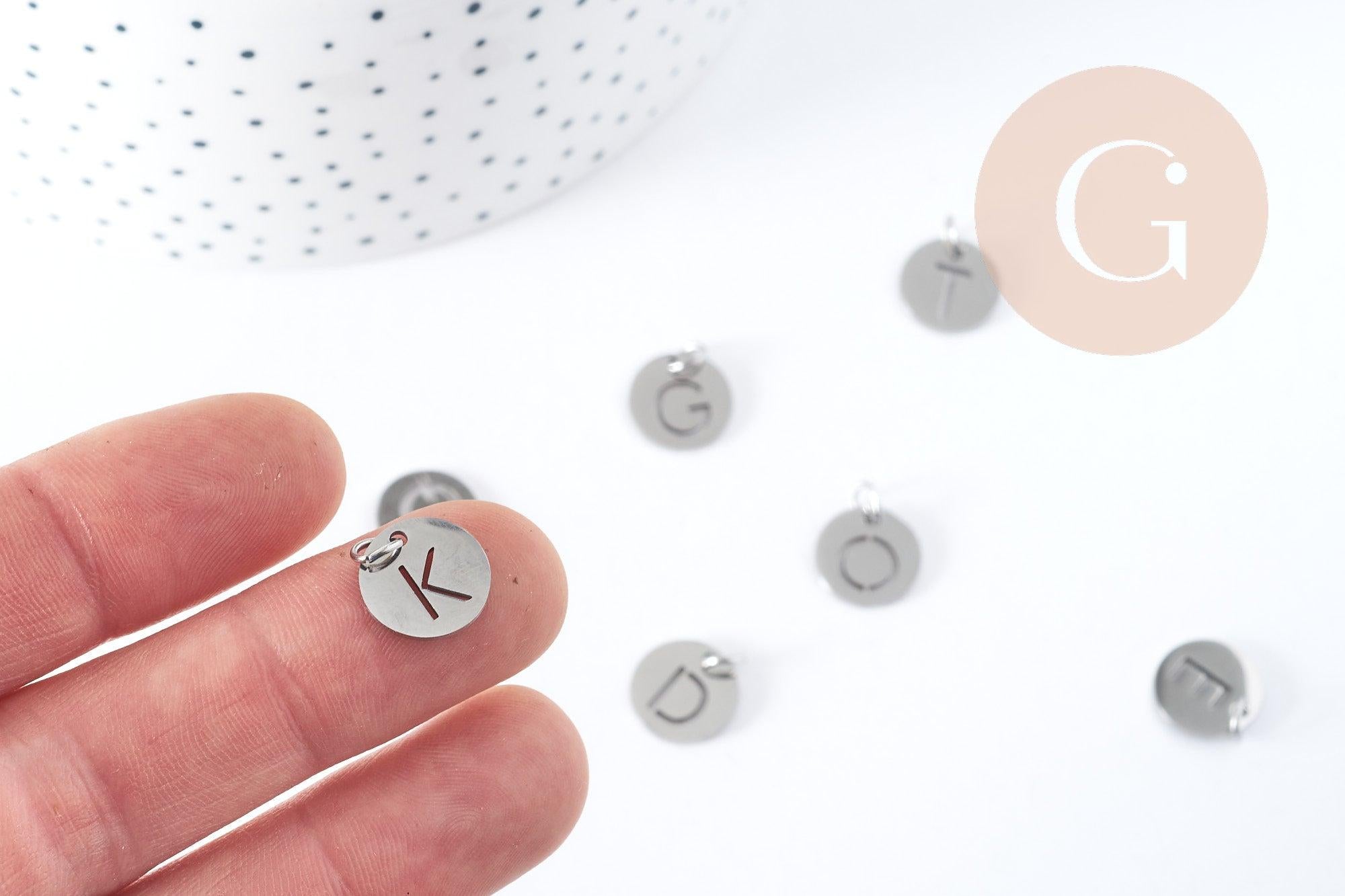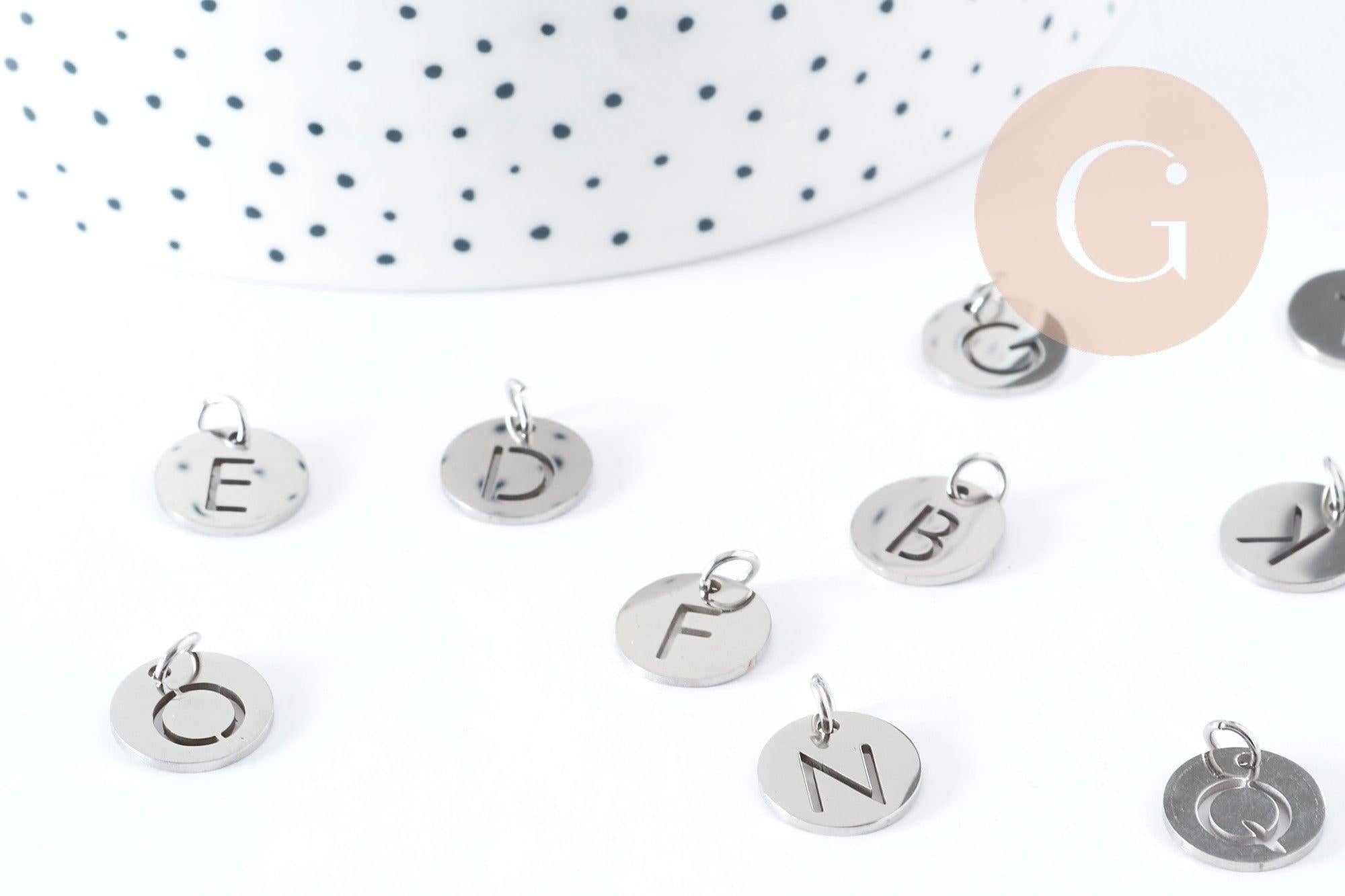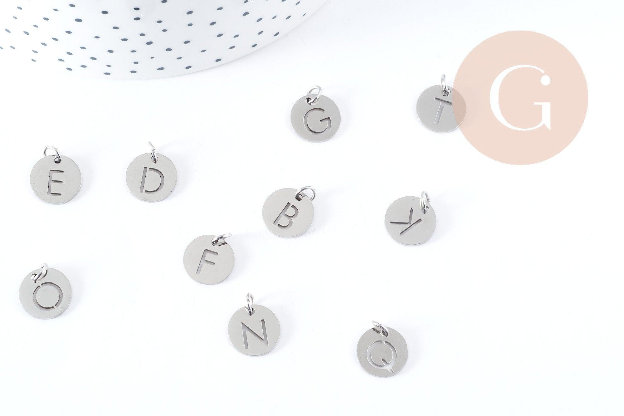 Personaliza tus creaciones con este colgante con inicial en acero inoxidable 201 color platino . Elegante y atemporal, es ideal para crear joyas simbólicas y refinadas: collares personalizados, pulseras con letras o colgantes para regalar.