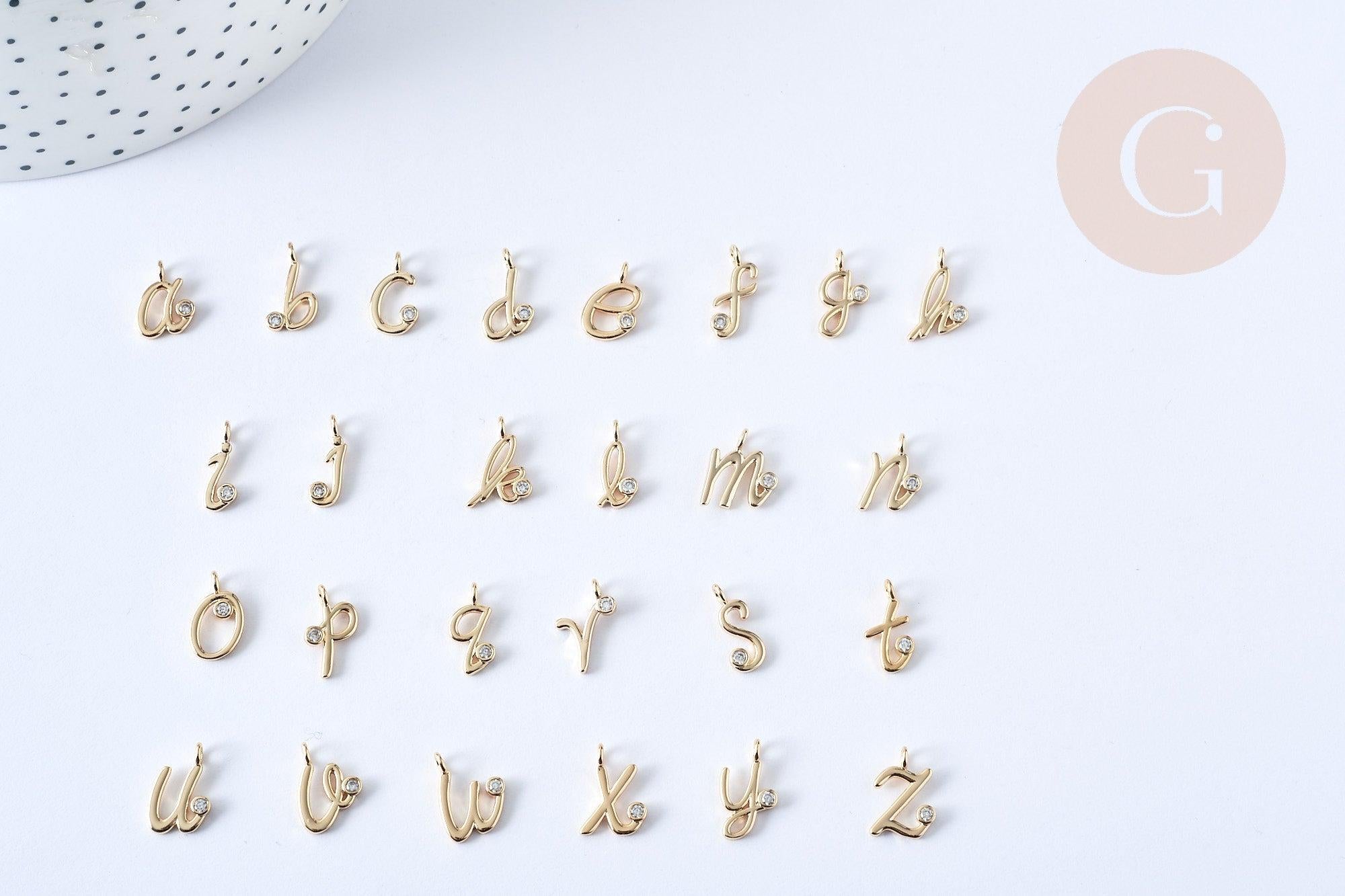 Este dije de letra del alfabeto de latón dorado Representa las letras del alfabeto en letras minúsculas. Sobrio y moderno, este charm está elaborado con una circonita cúbica y le inspirará a crear joyas personalizadas para hombre o mujer . ¡Bonitas bisutería de bricolaje son tuyas!