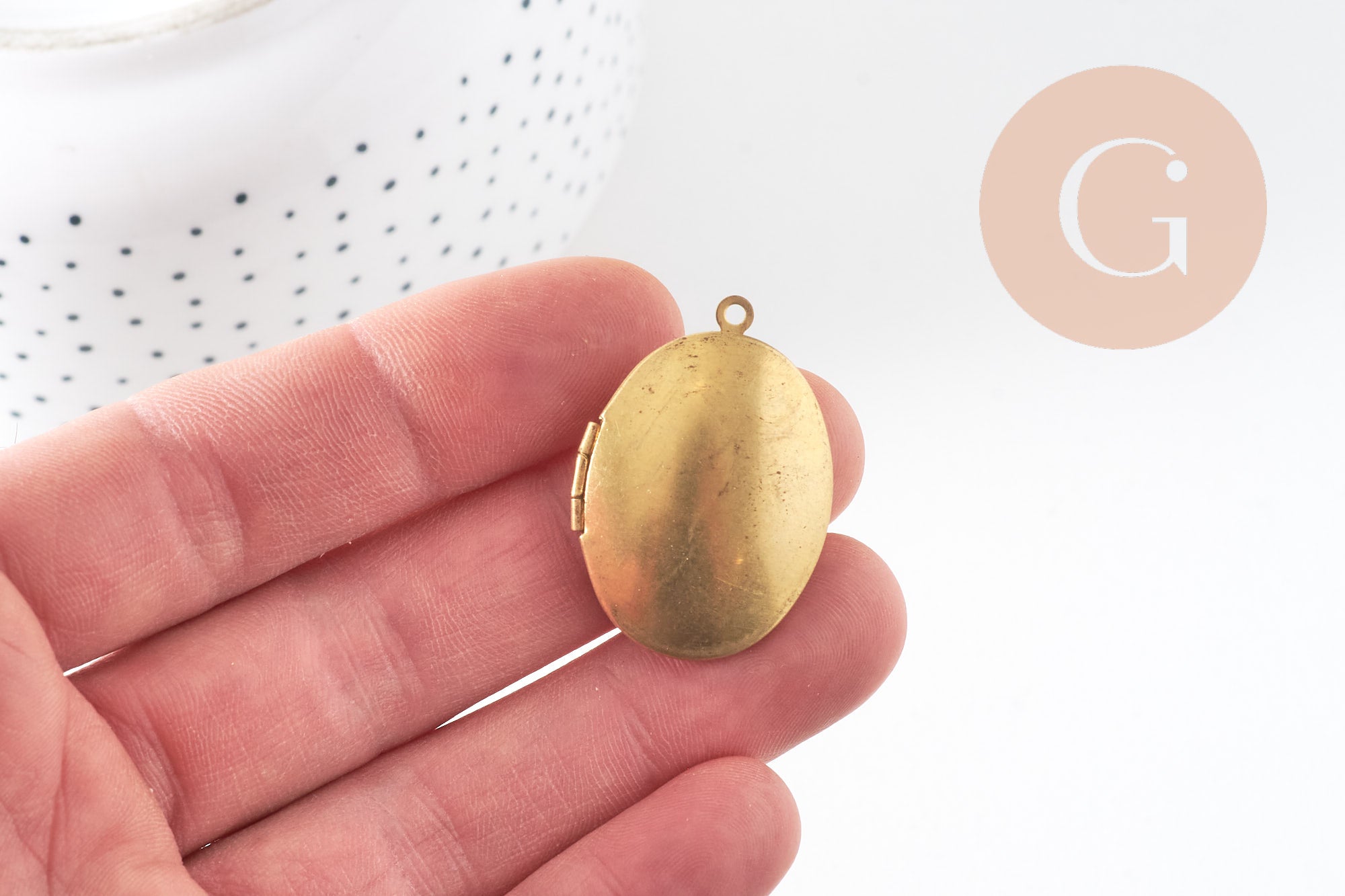 Medallón de latón crudo colgante de medallón ovalado, suministros creativos, medallón vintage, creación de collares, latón crudo, 32 mm x 23 mm G6668