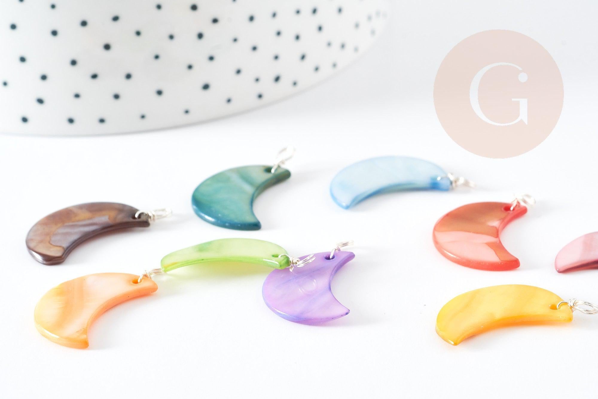 Despierta tu creatividad con nuestro colgante de luna de nácar multicolor , montado sobre un soporte de cobre bañado en plata de 28,5mm.