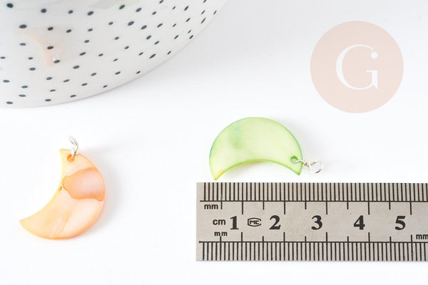 Colgante luna en nácar multicolor, soporte cobre plateado 28.5mm, colgante luna concha joyería DIY x1 G9155