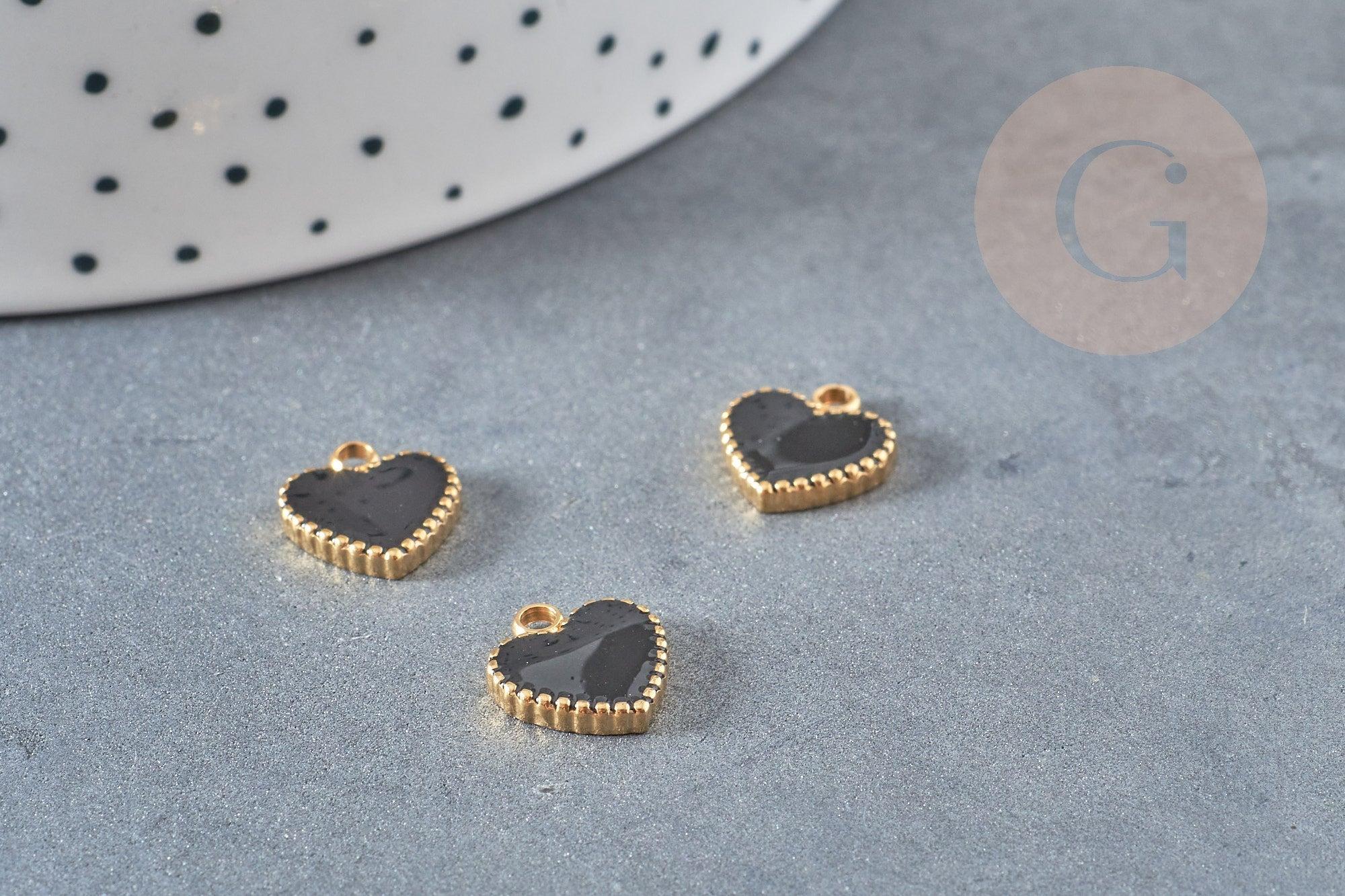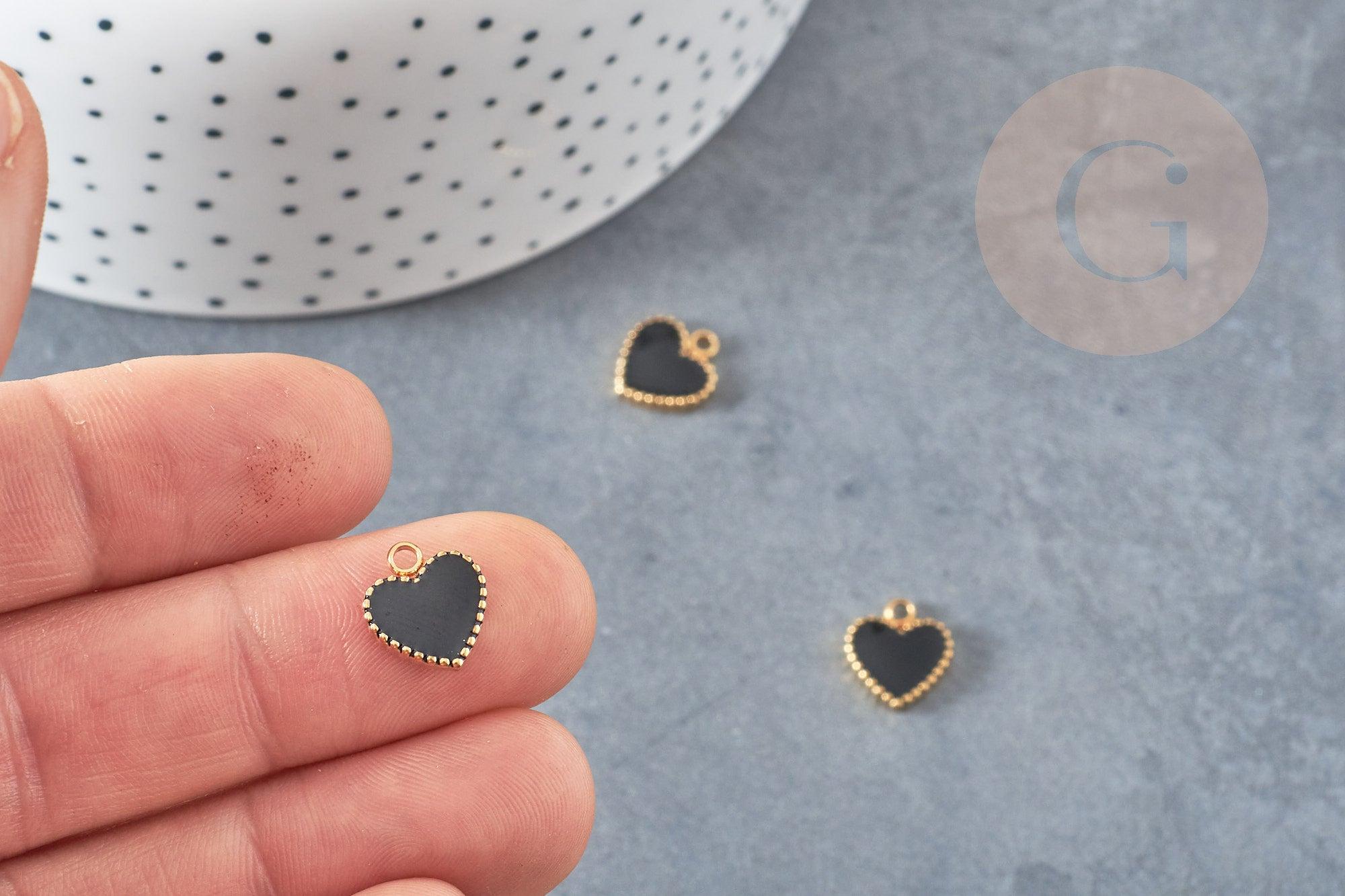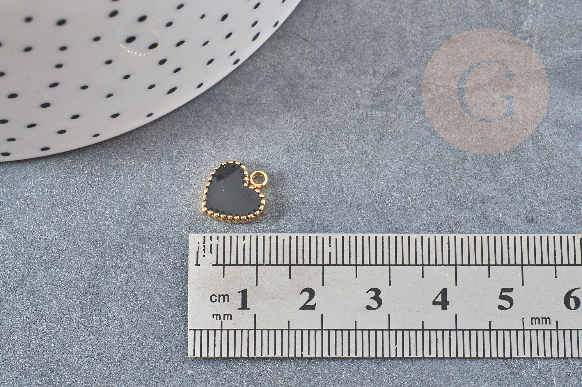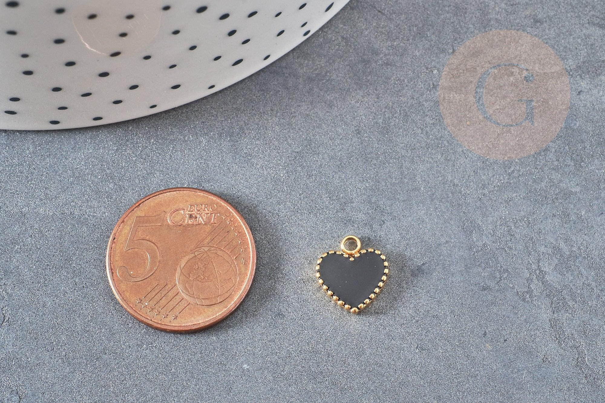 Colgante medalla corazón de acero dorado con esmalte negro, colgante de acero dorado, sin níquel, medalla de acero, 11mm x1 G4885