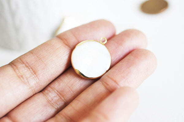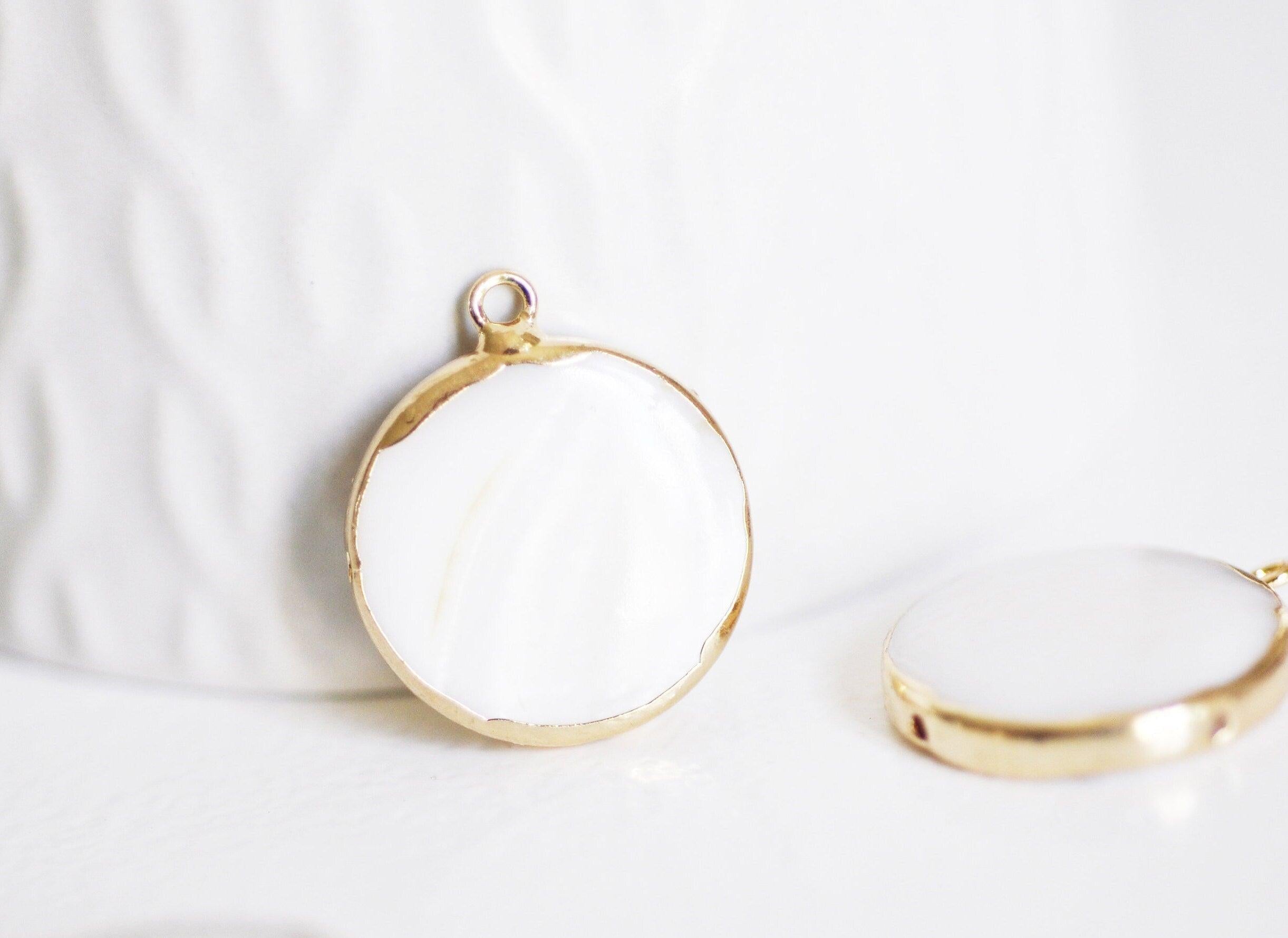 Colgante de nácar blanco natural dorado, suministro creativo, colgante redondo de nácar, concha blanca, creación de joyas, 26 mm