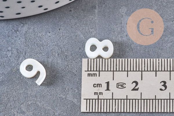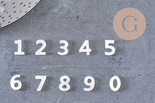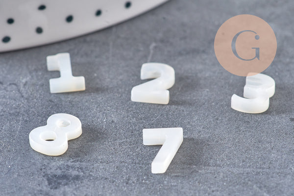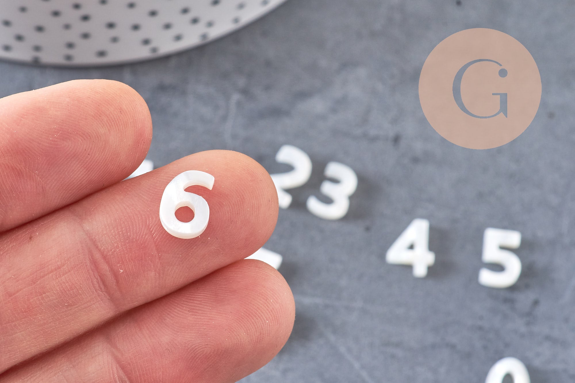 Un bonito colgante de número en nácar blanco natural, para llevar como collar, pendientes o pulsera con tu número de la suerte. ¿Por qué no crear un collar con tu día de nacimiento o año de boda?