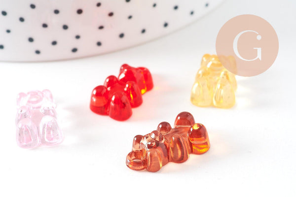 Lindos colgantes de osito en resina de color caramelo, para realizar joyas sobre el tema de la infancia.