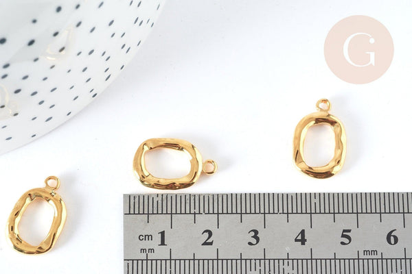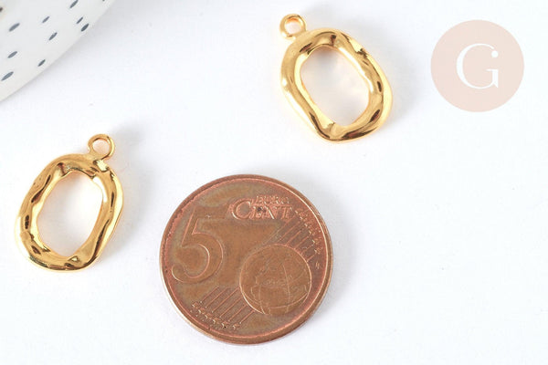 ¡Haz un montón de bisutería DIY con este colgante de acero inoxidable dorado ! Este elemento de joyería está hecho de acero inoxidable sin níquel, martillado para obtener un efecto redondeado. Éste tiene un lado precioso y atemporal .