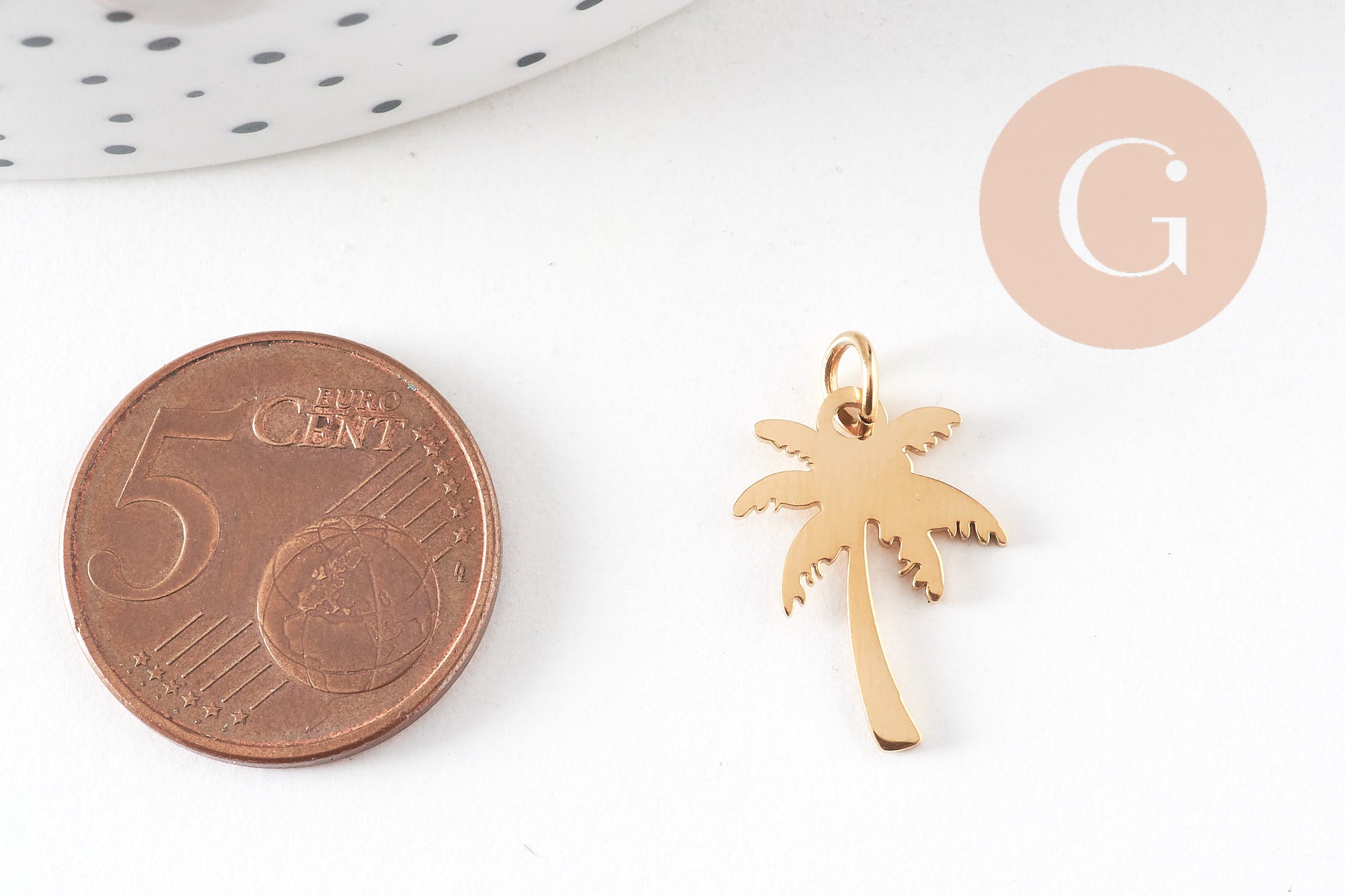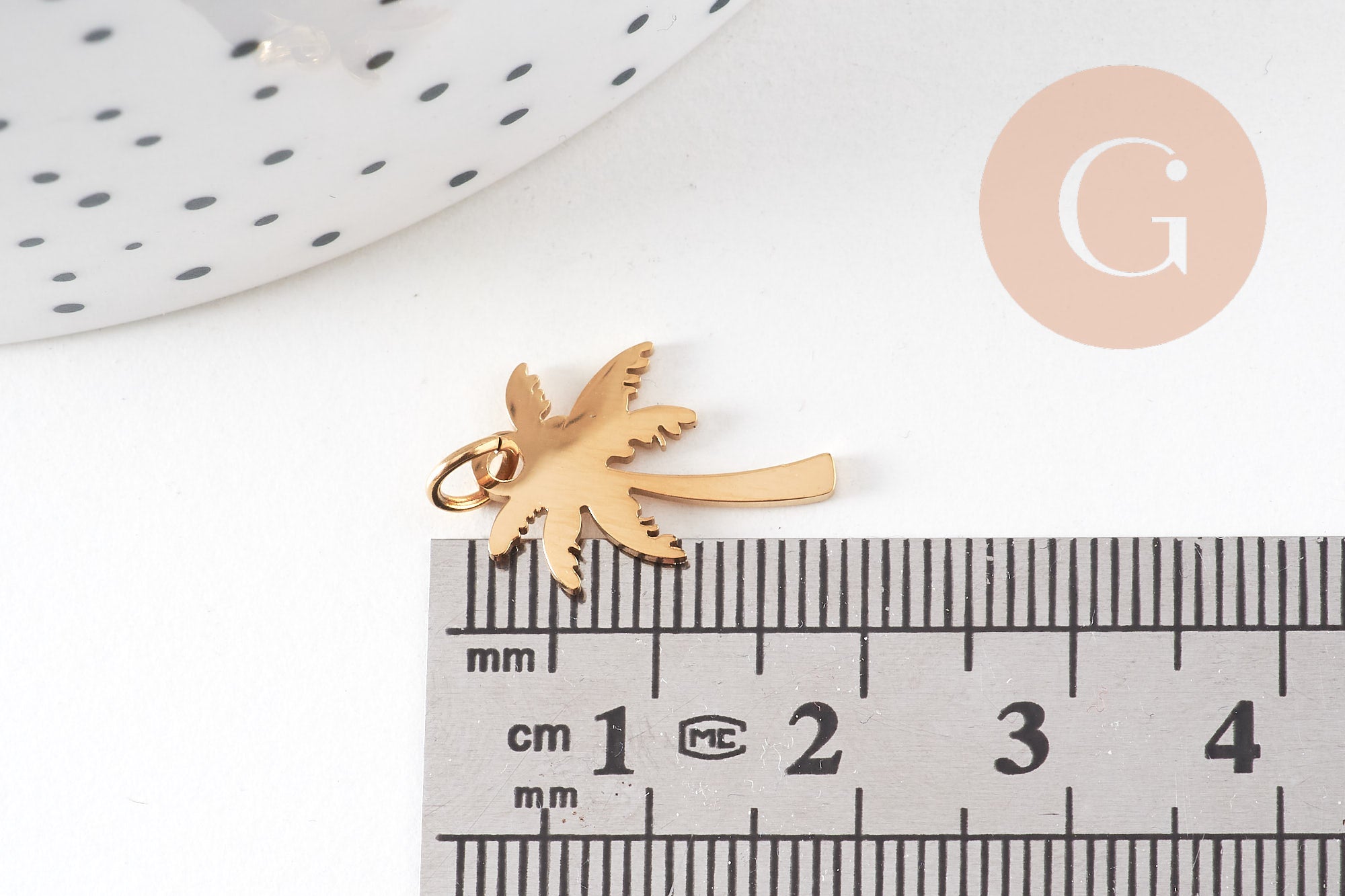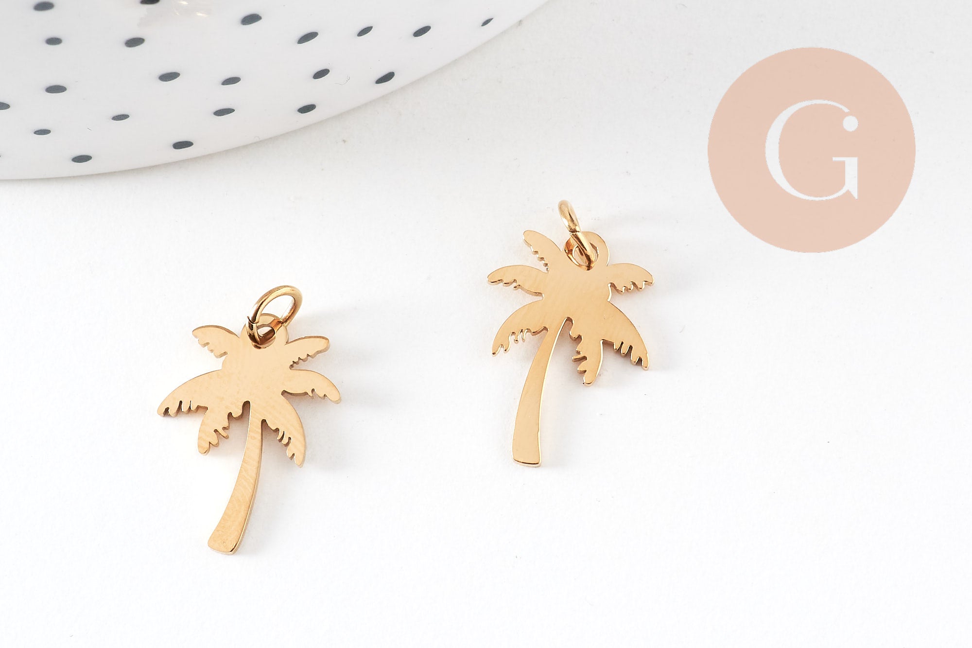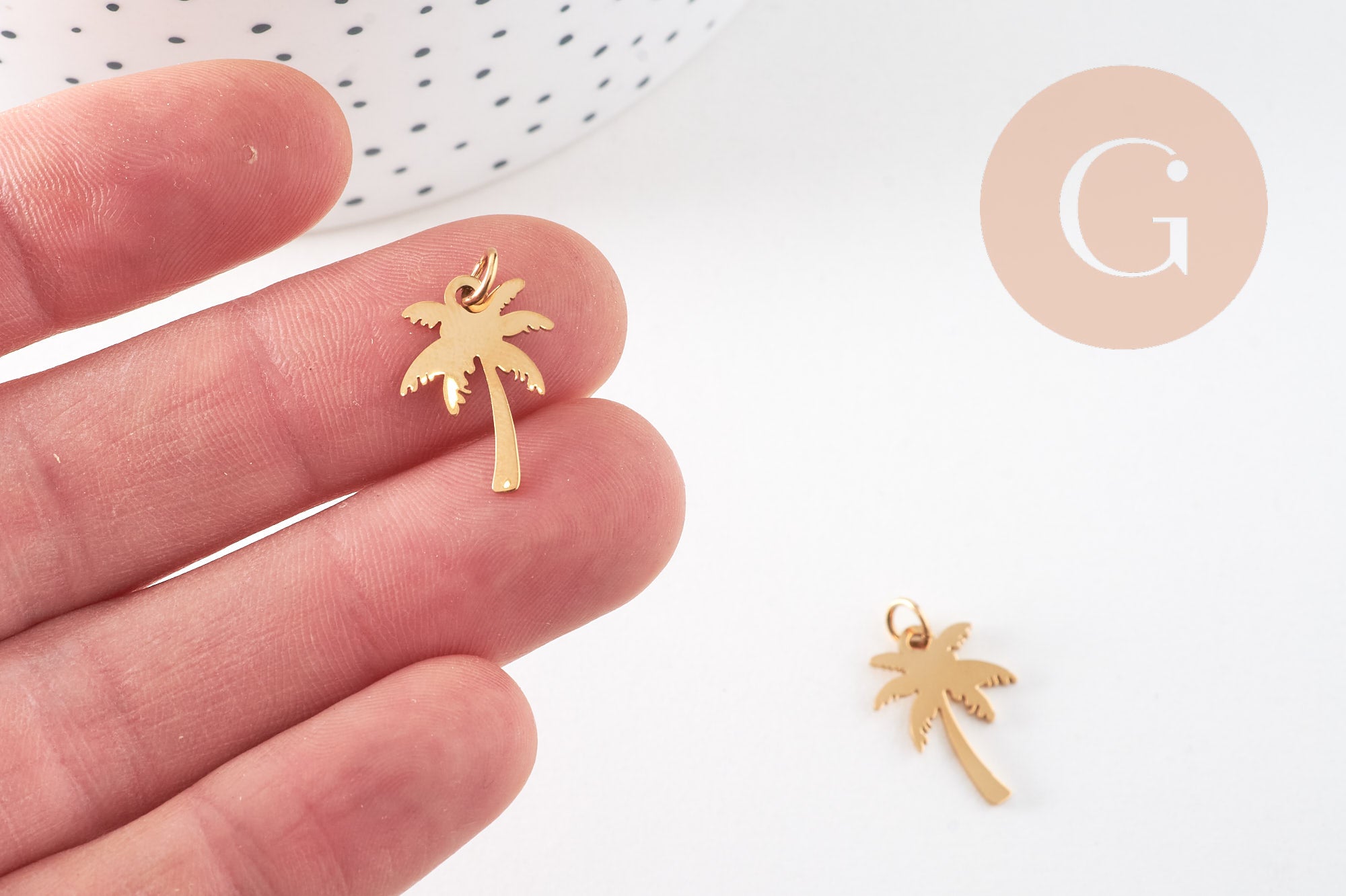 Colgante de palmera en acero inoxidable 304 dorado IP 17 mm, x1 (G10833)