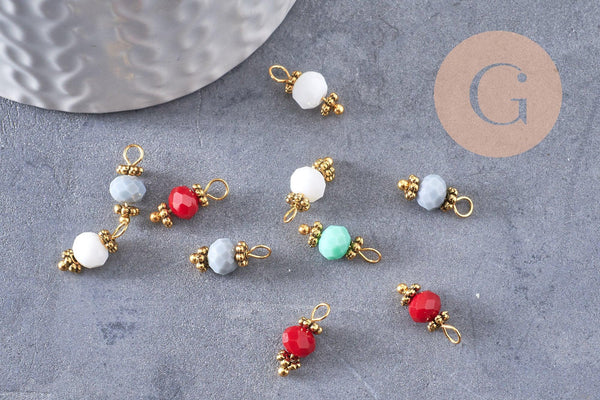 Para joyas coloridas, adopte estos colgantes de ábaco de vidrio facetado en latón dorado