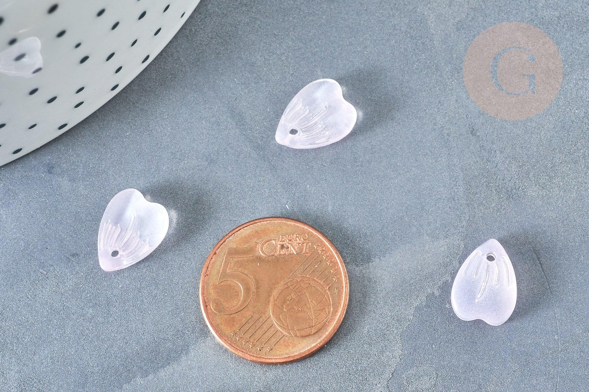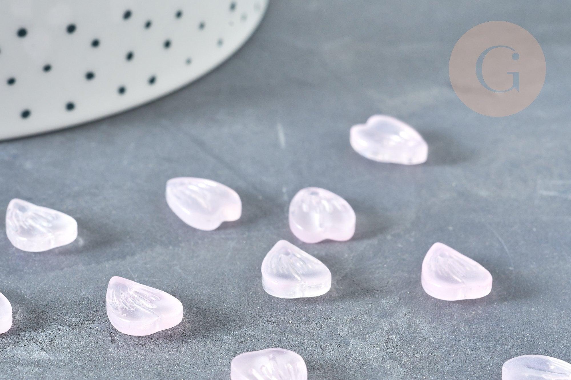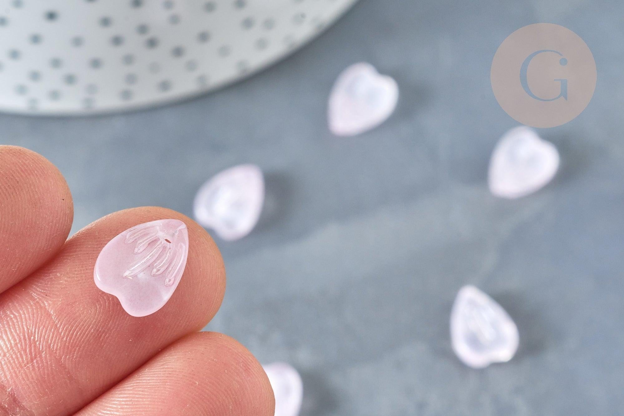 Pendentif pétale verre rose clair 12mm, perles verre tchèque, perle végétal, x10 (G8252)