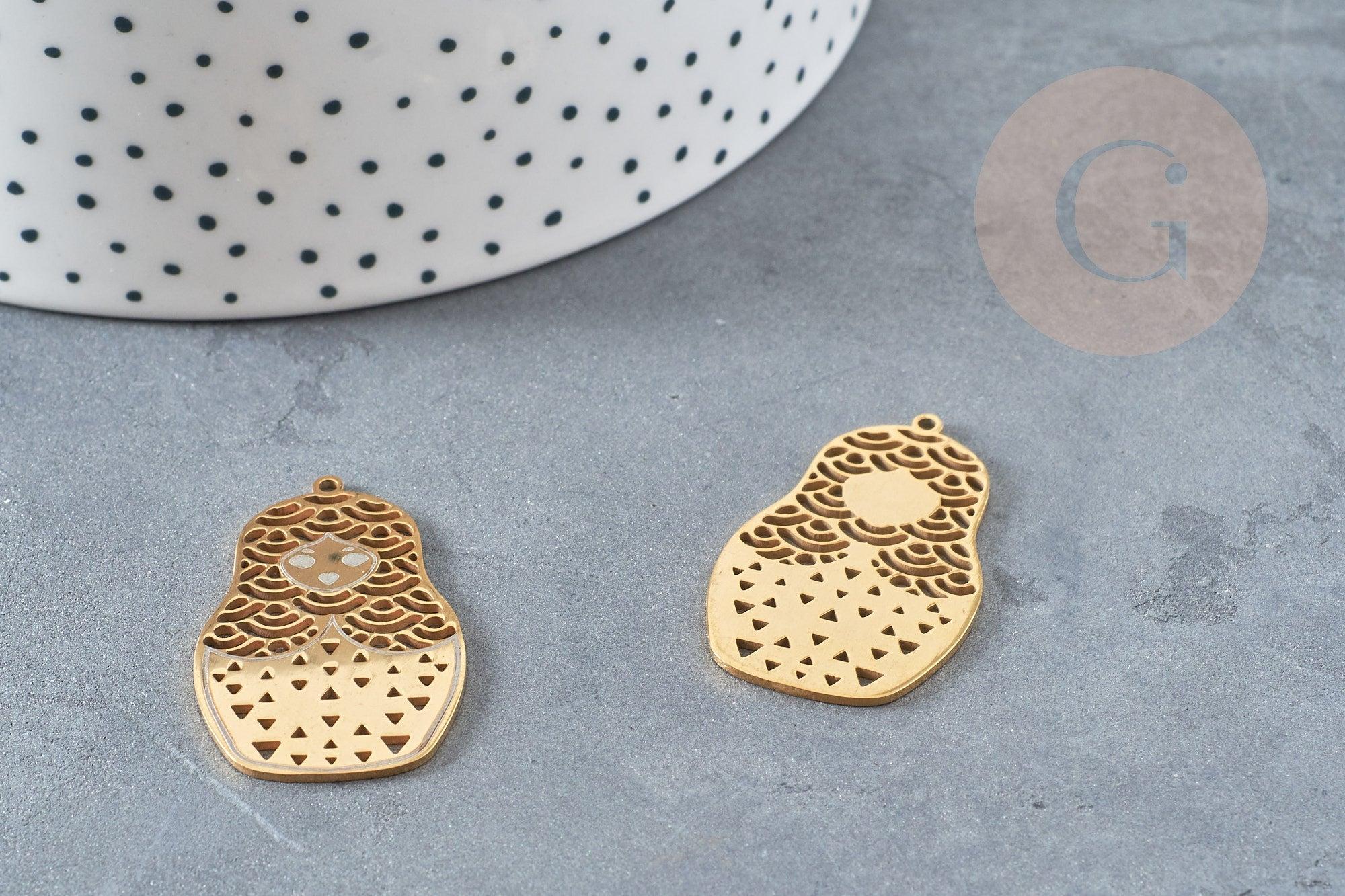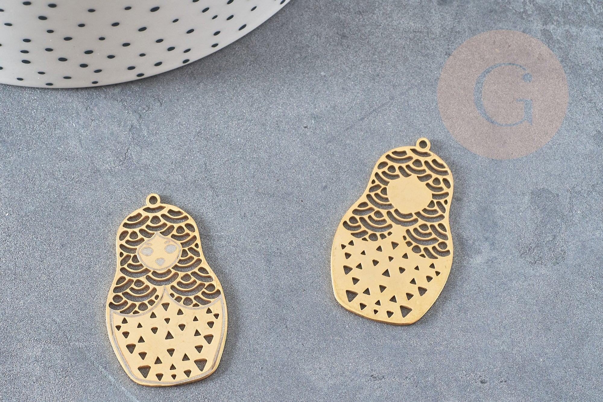 Un adorable colgante de muñeca rusa en acero inoxidable bañado en oro, para realizar bonitas joyas de moda DIY.