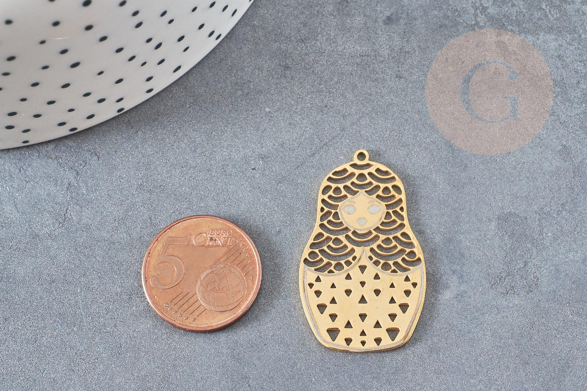 Colgante muñeca rusa acero dorado 37mm, charm dorado, acero inoxidable dorado, colgante sin níquel, x1 G6126