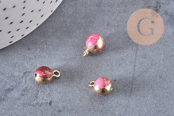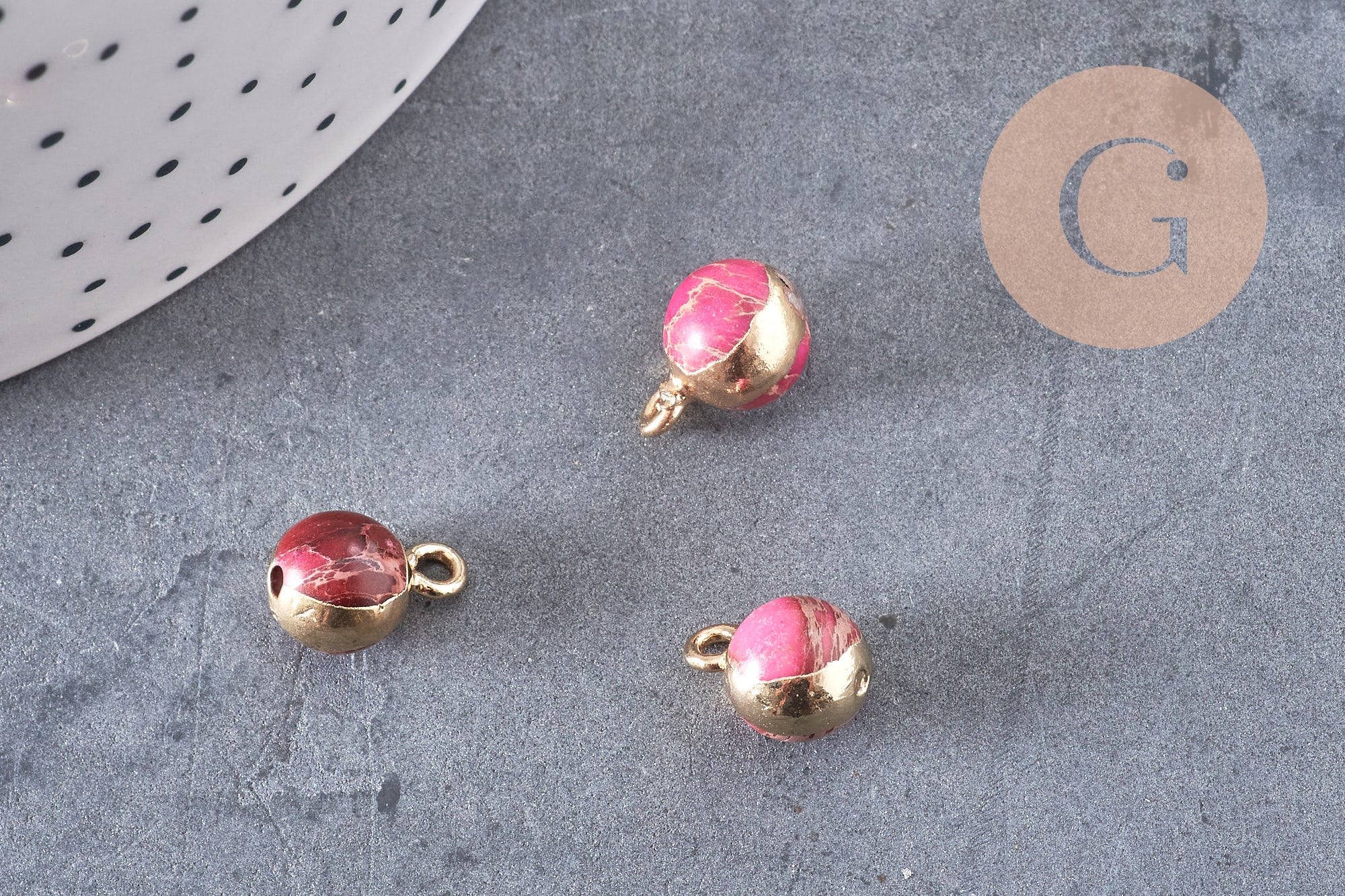 Déjese seducir por este magnífico colgante de regalita teñida de rosa coral con soporte dorado.