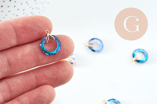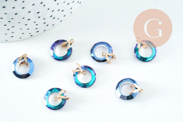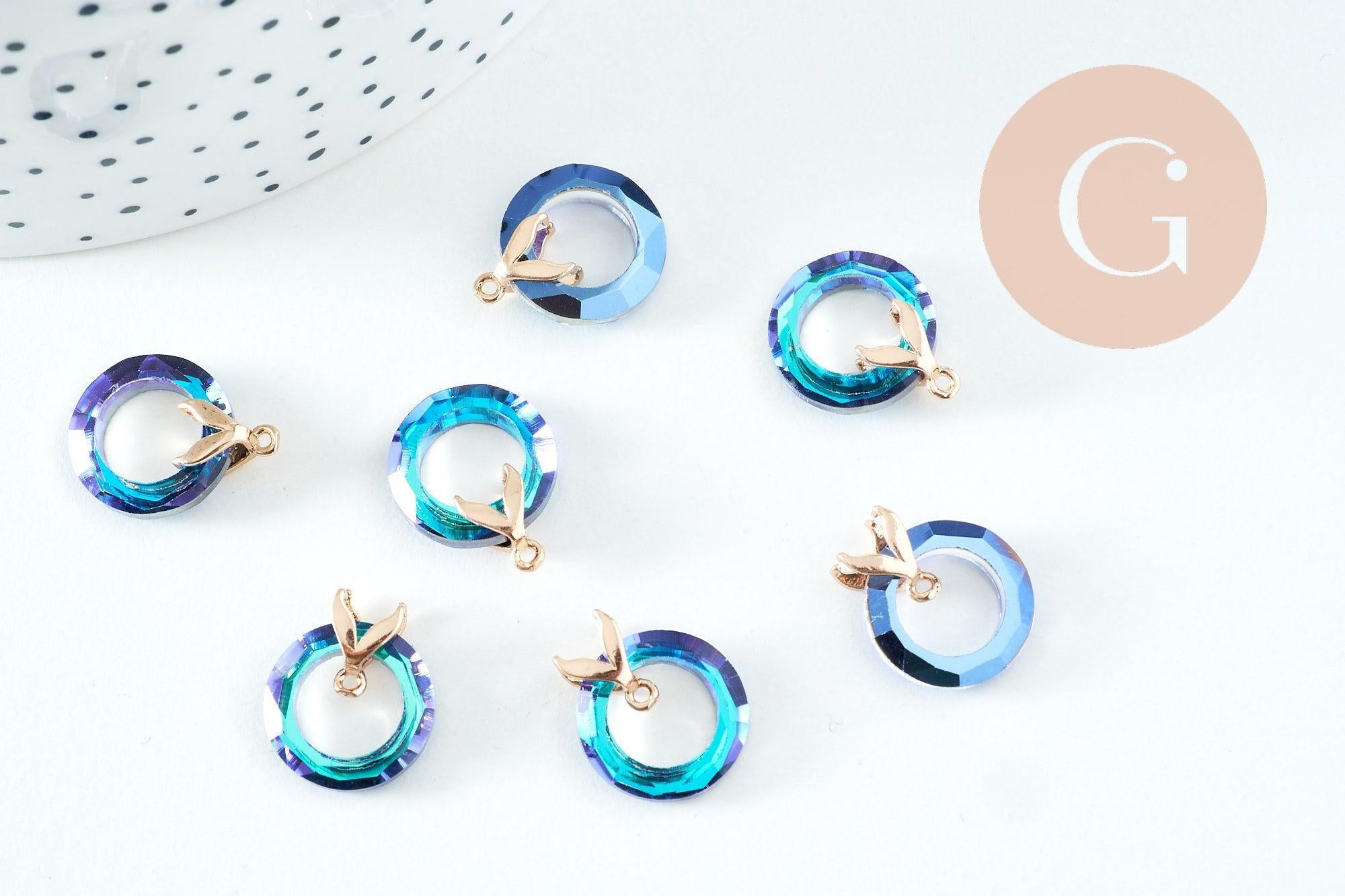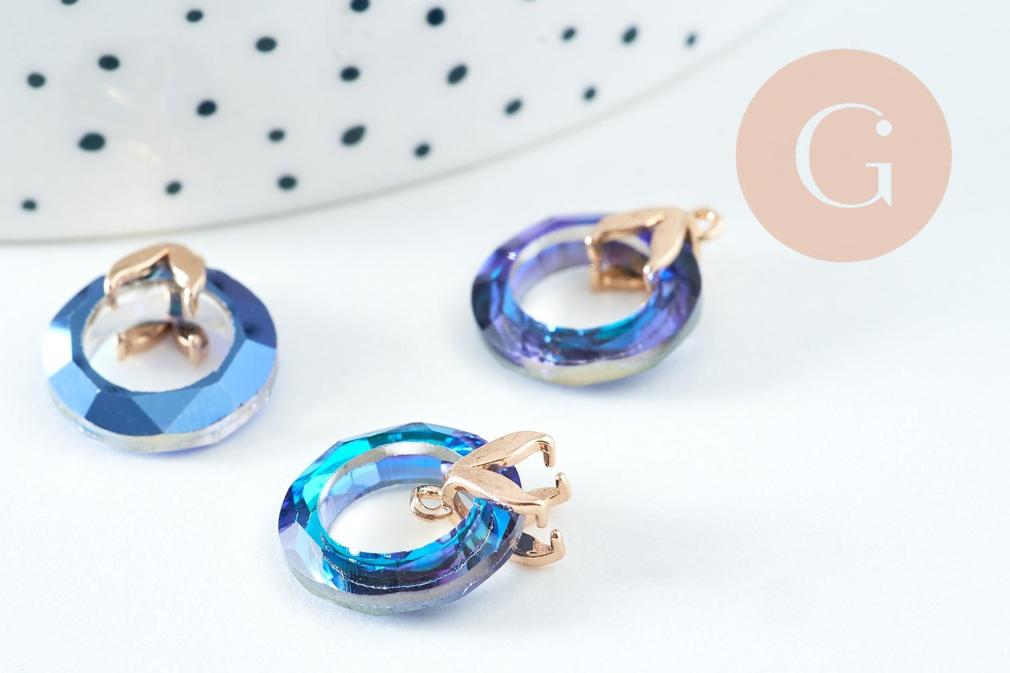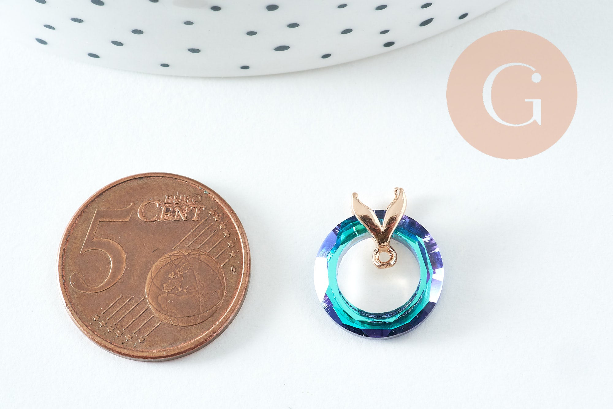 Pendentif rond cristal noir irisé laiton doré 17mm, x1 (G3884)