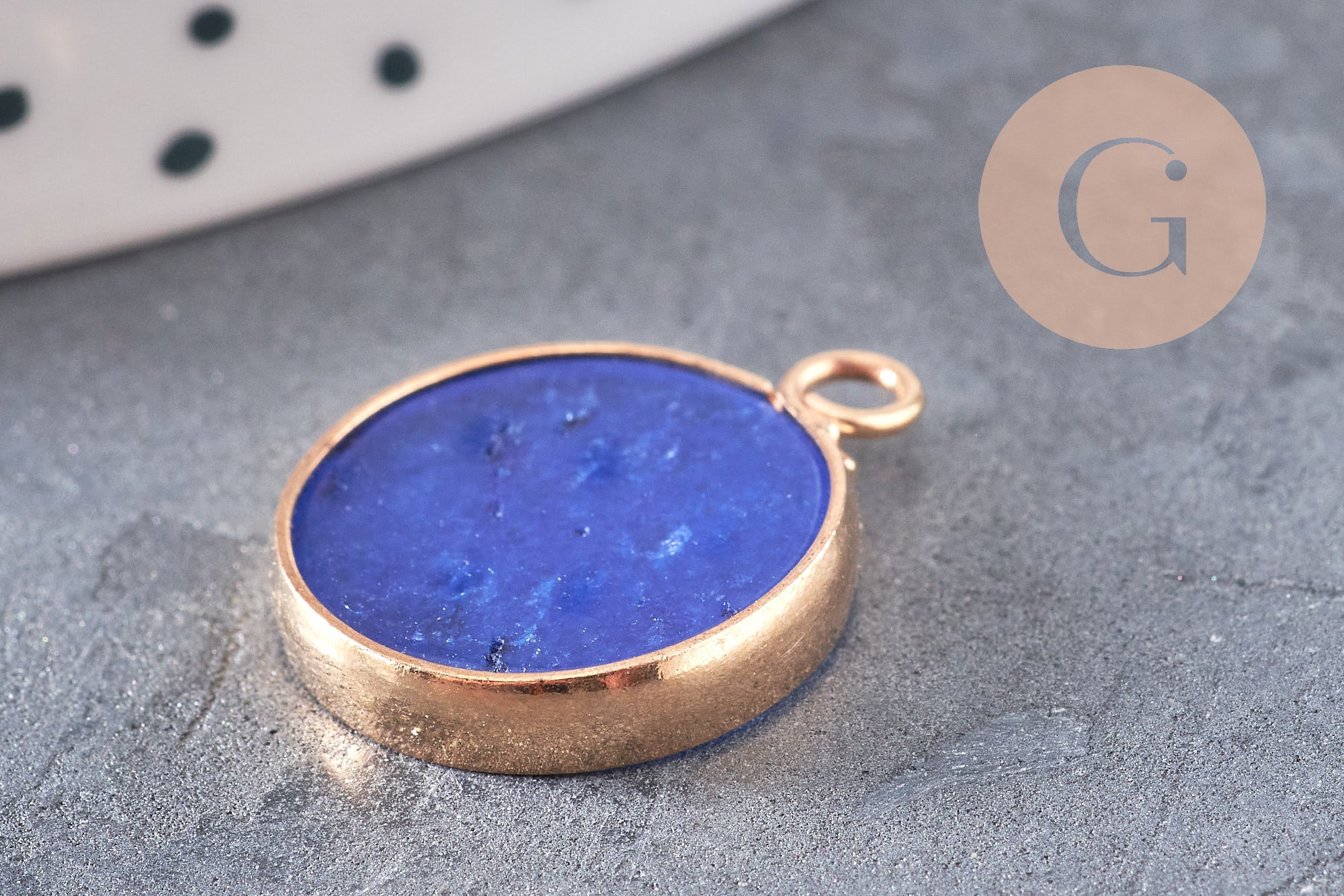 Pendentif rond jade bleu, naturel,pendentif rond,20.5mm, x1 G2173