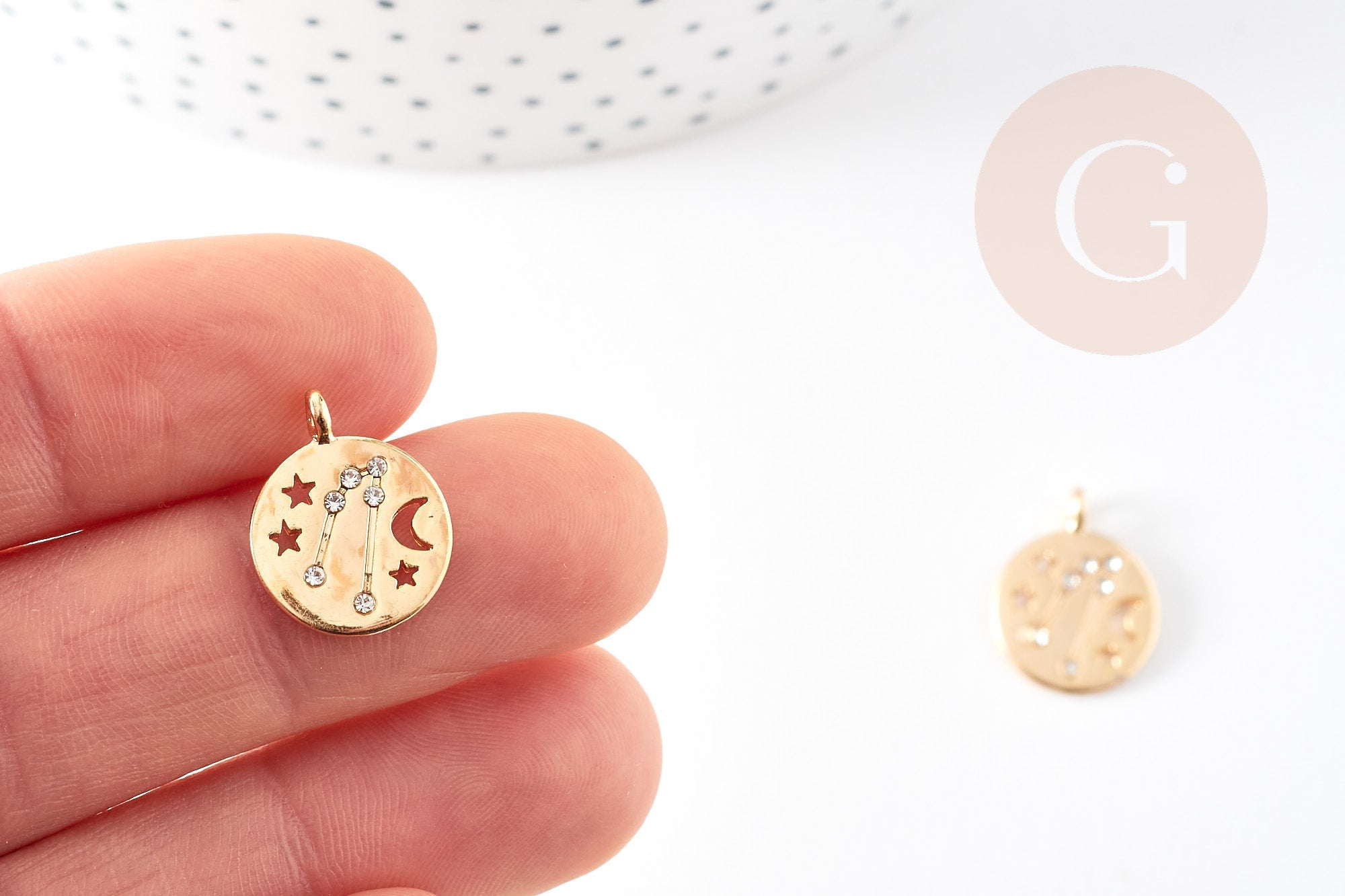 Colgante luna y estrellas Tauro en zamac dorado y circonitas 17mm, medalla colgante signo astrológico dorado, x1 G3514