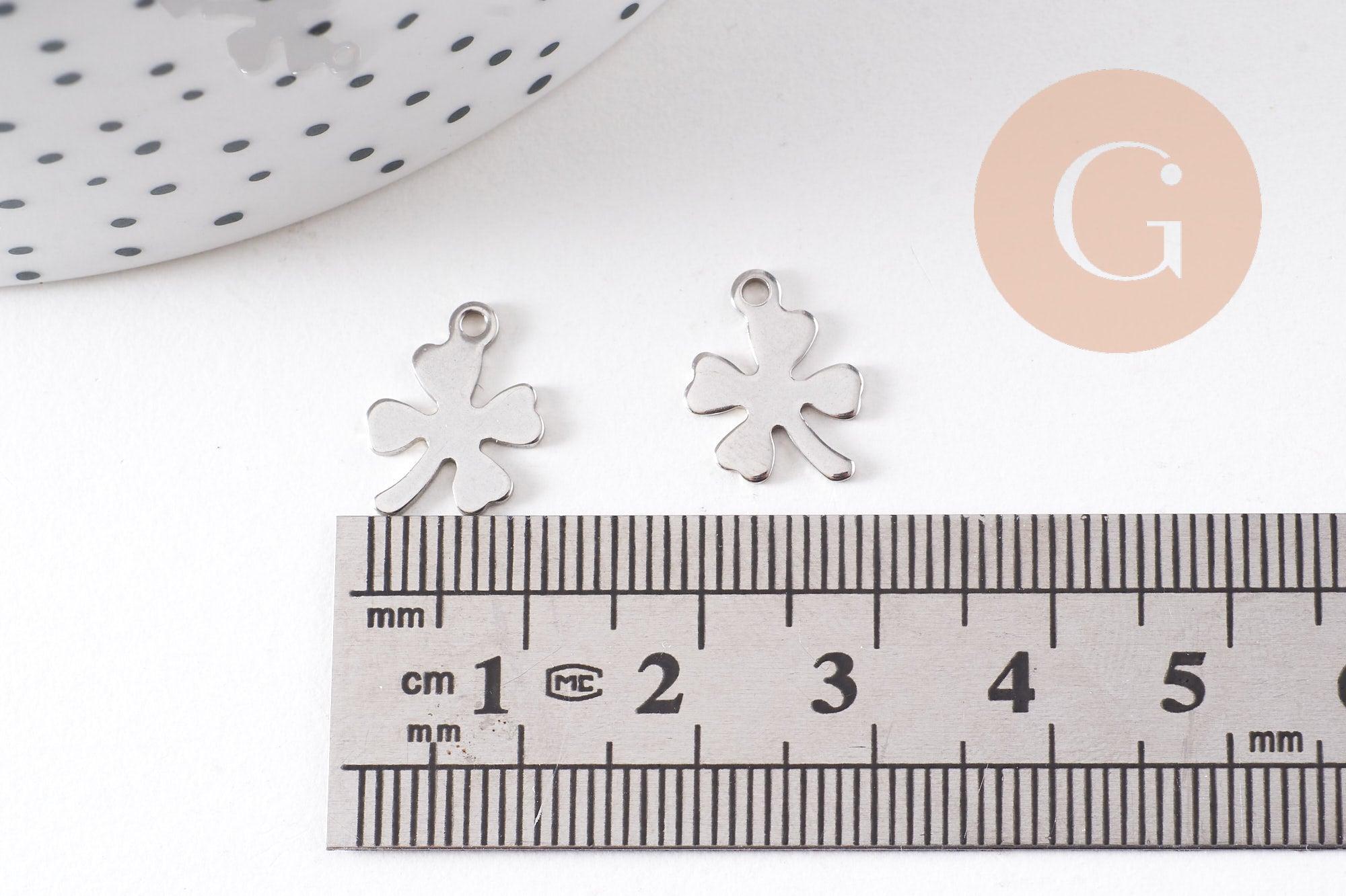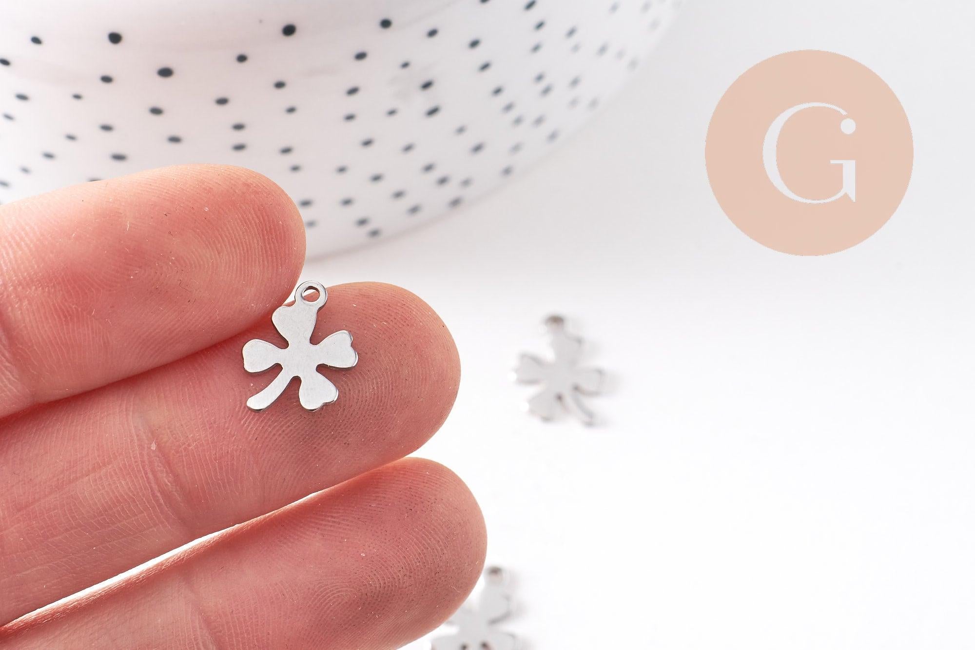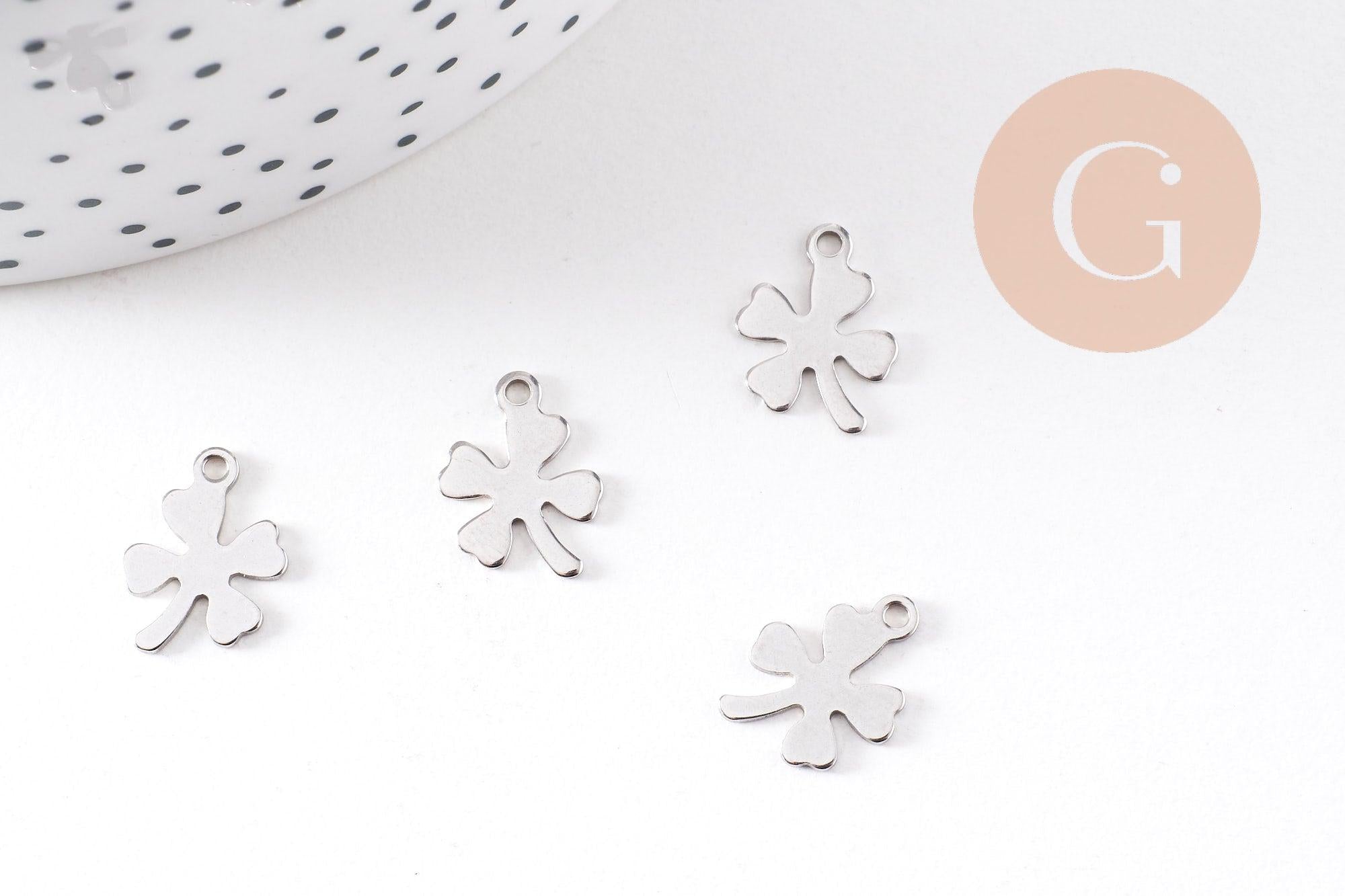 Este colgante de trébol de cuatro hojas de acero inoxidable 201 con acabado platino es un símbolo de suerte y felicidad . Su diseño delicado y minimalista lo convierte en un accesorio ideal para crear joyas de la suerte, ya sean collares, pulseras o pendientes .