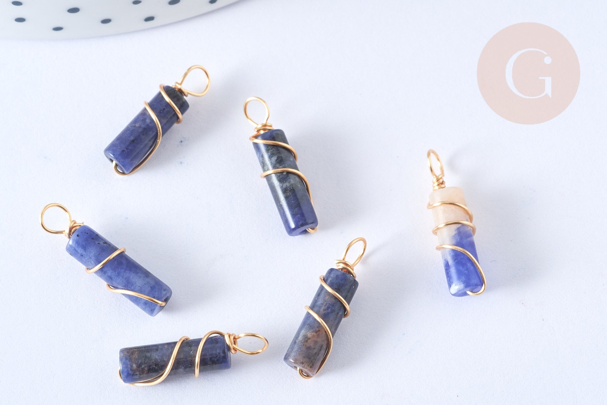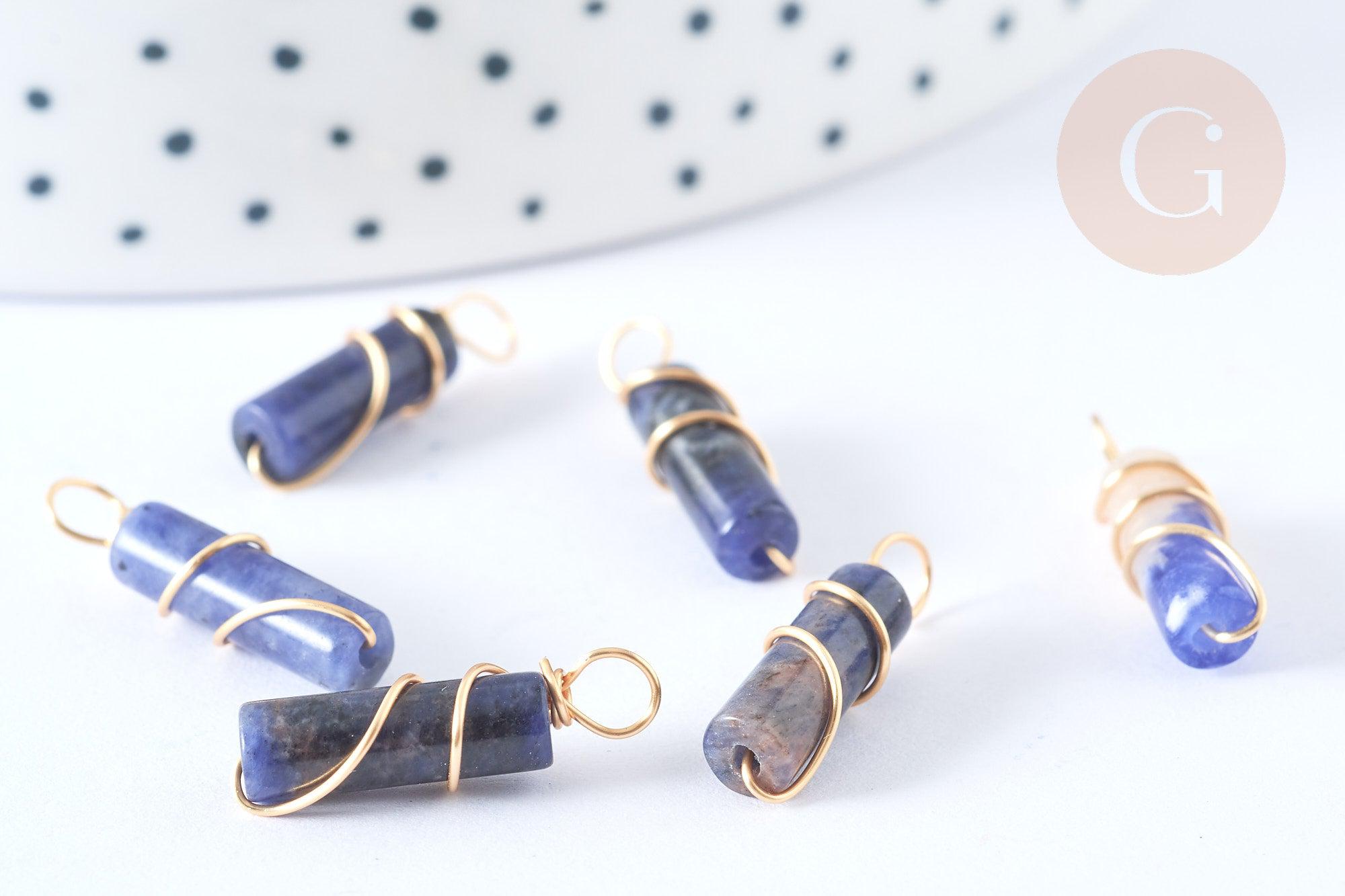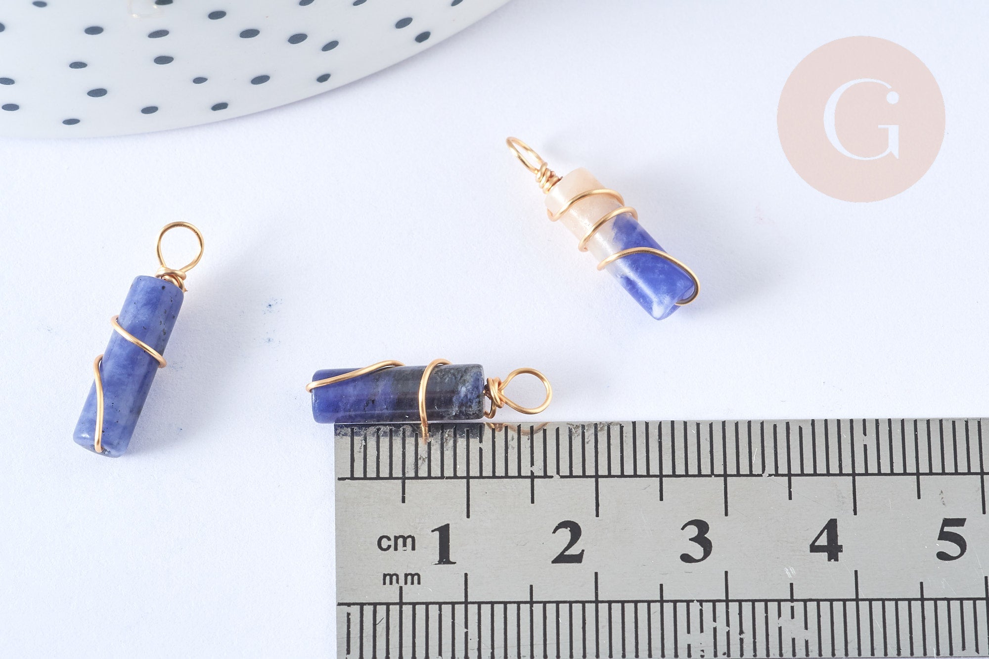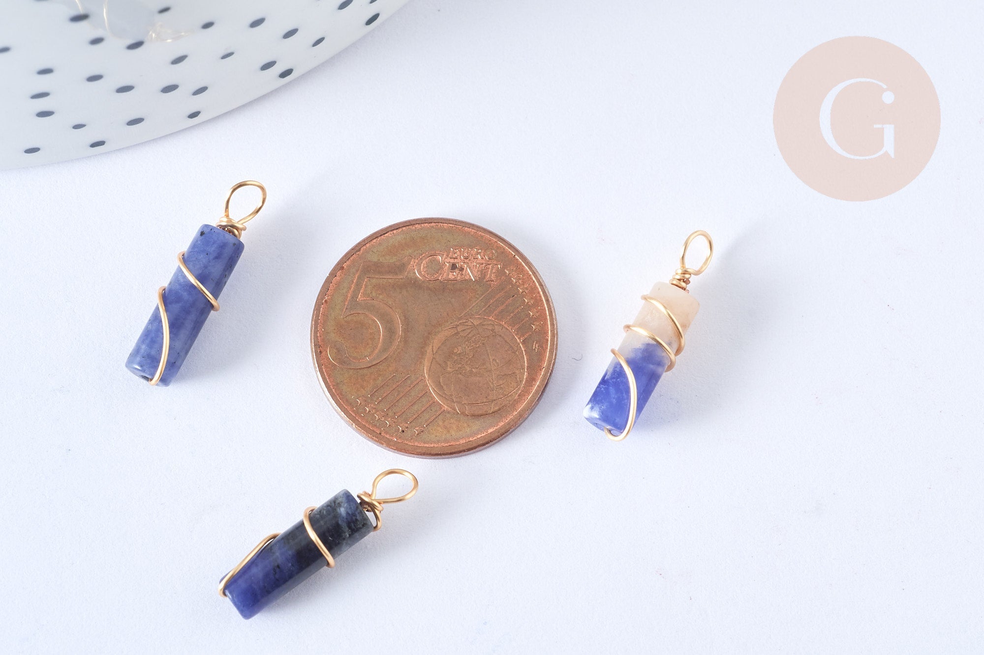Pendentif tube bleue naturelle cuivre doré 20~21mm, pierre naturelle, x1 (G7590)
