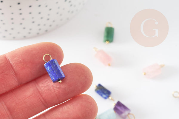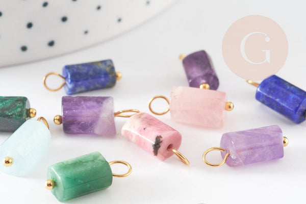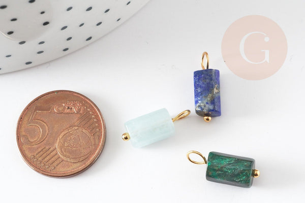 Adopte este colgante de tubo en piedra natural , piedra fina. Este tiene forma de columna . Además, este está montado en un bucle. en acero dorado . ¡Esto te permitirá colgarlo donde quieras!