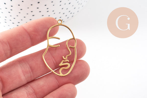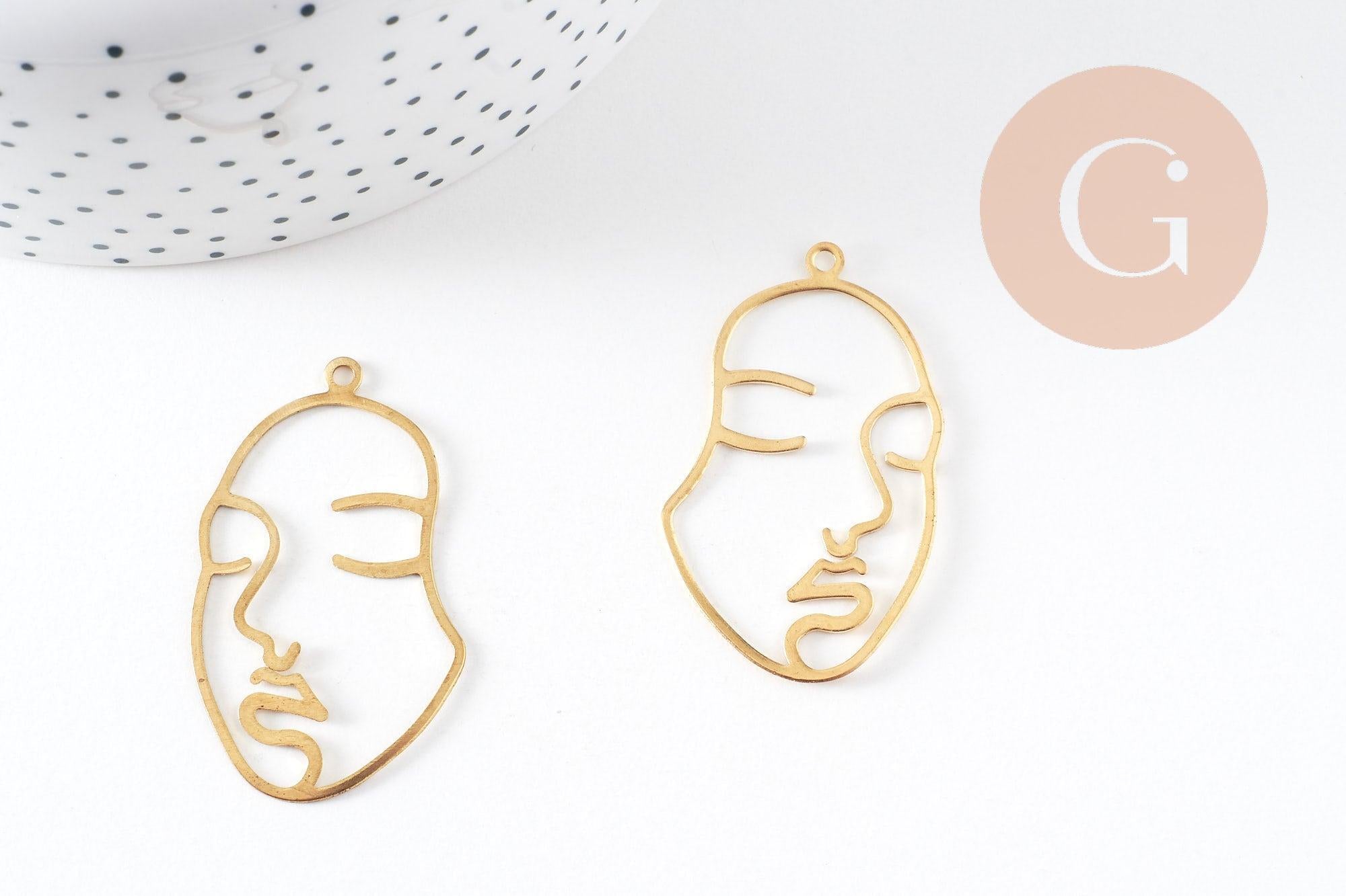 Colgante de latón en bruto con cara, suministros de joyería, latón en bruto, colgante minimalista, joyería moderna, 43 x 26 mm