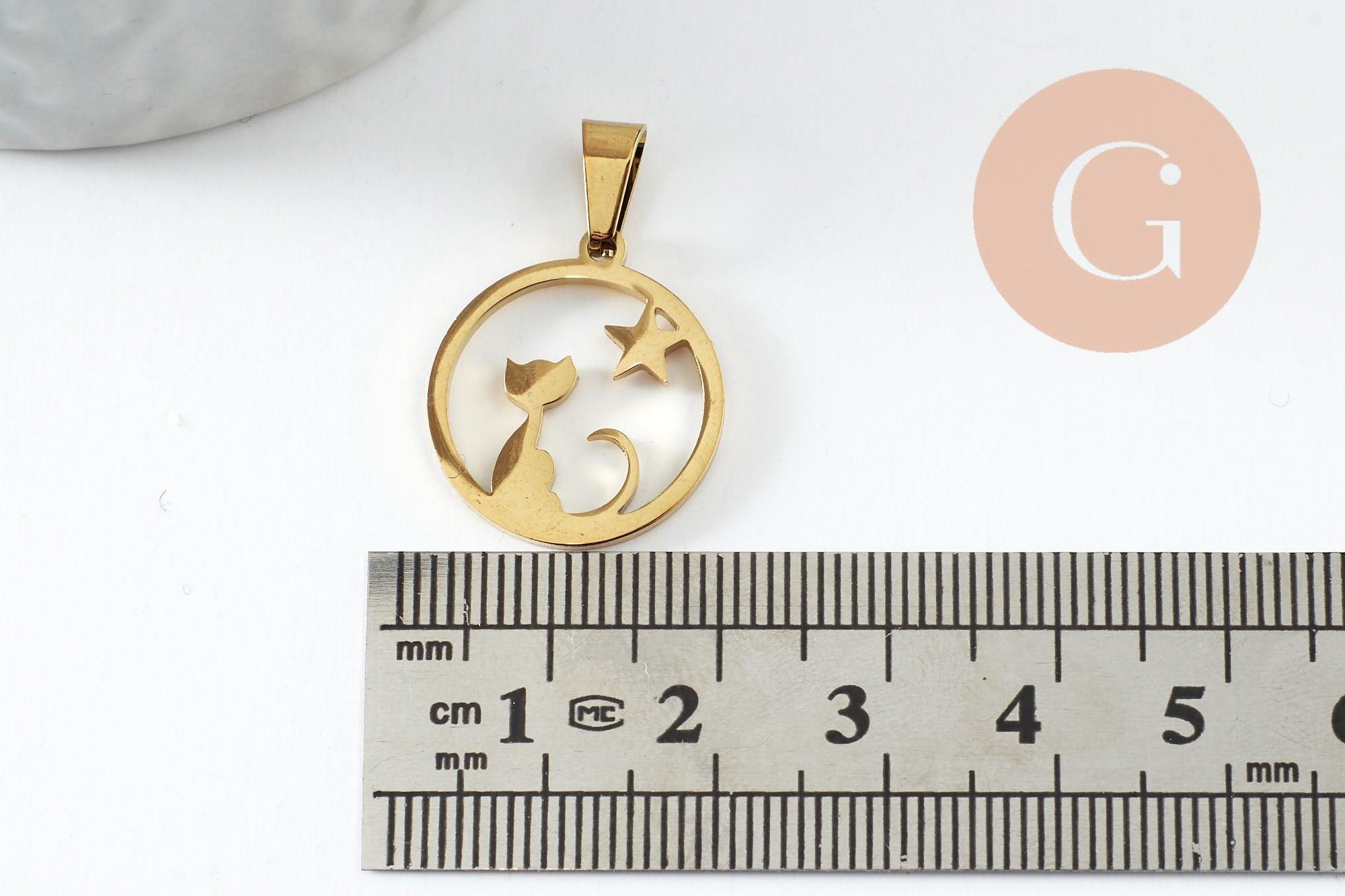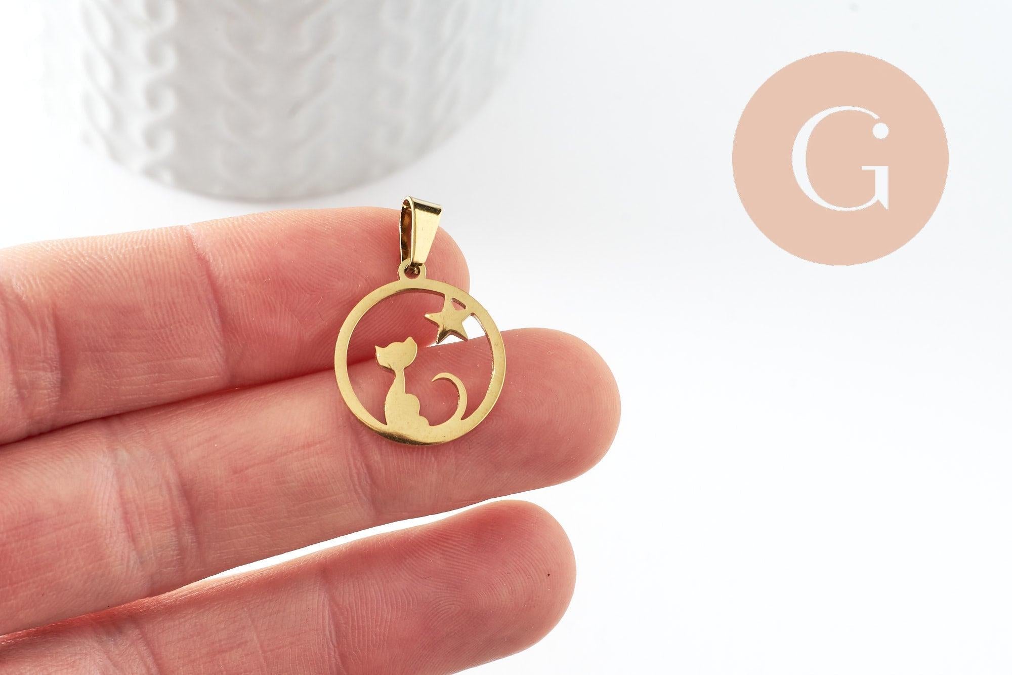 Un precioso colgante con forma de gato sentado bajo las estrellas , en acero inoxidable 304.