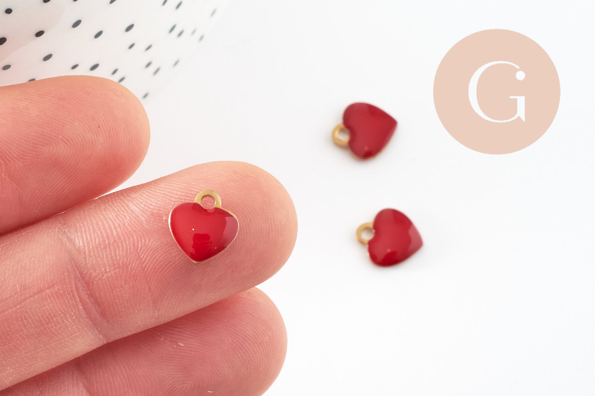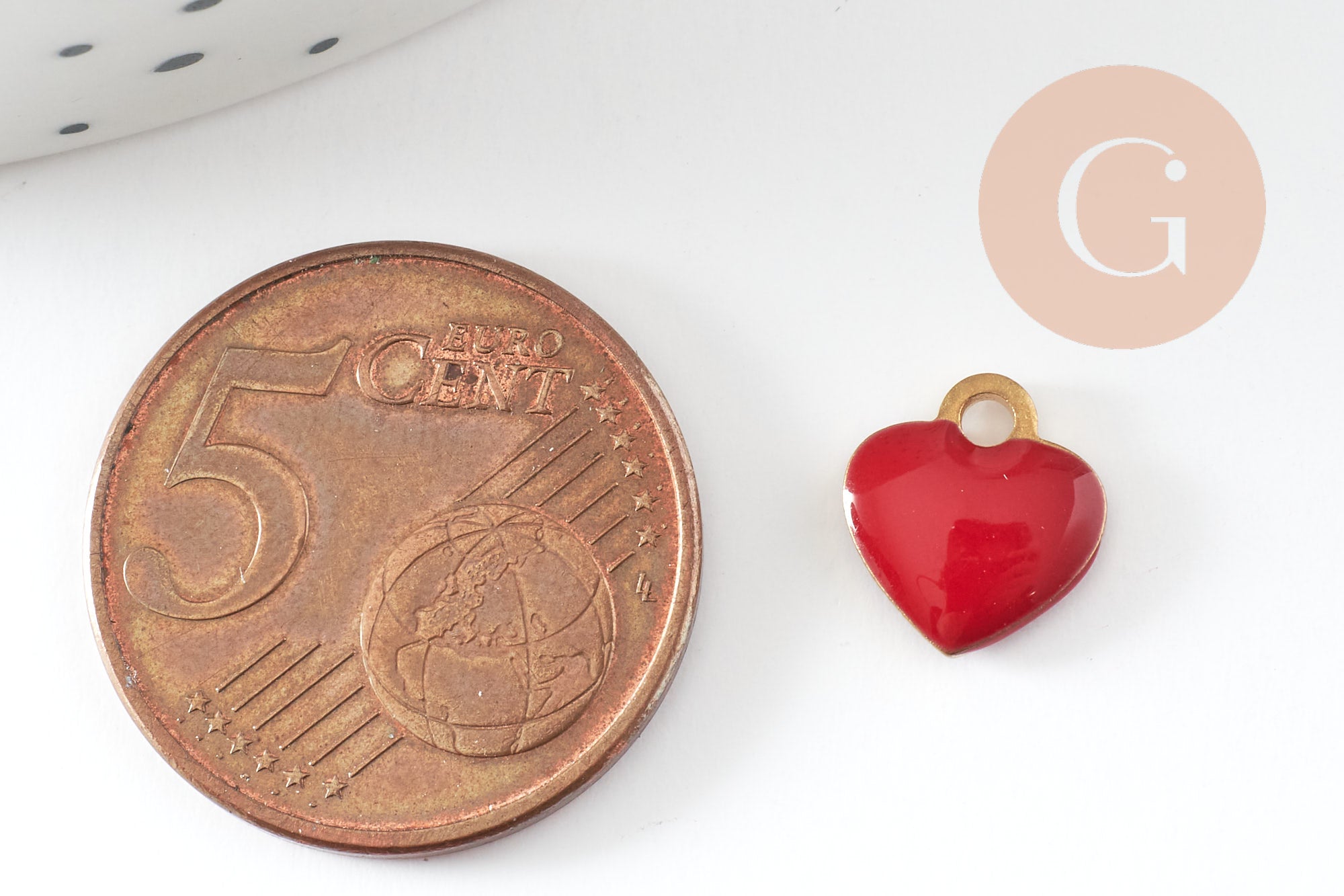 Colgantes de corazón de esmalte rojo dorado, colgante de corazón, suministros creativos, latón crudo, colgante de amor, creación de joyas, 10 mm, juego de 10 Un juego de 10 colgantes de corazón en latón en bruto y esmalte. Longitud: 10mm...