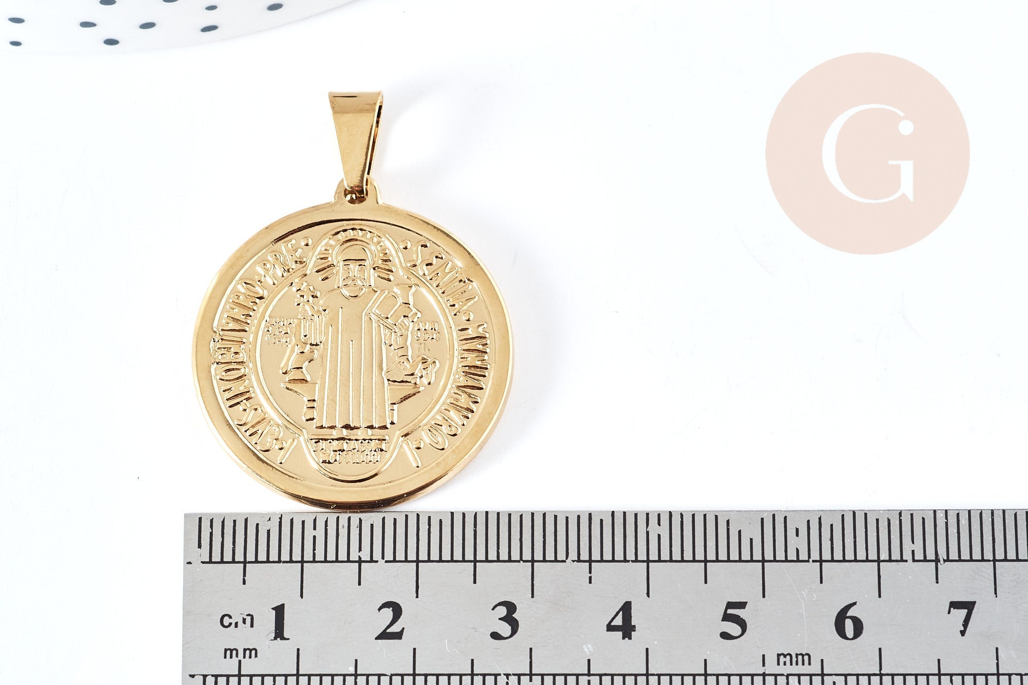 Colgante de San Benito, acero inoxidable 304, chapado en oro, 31 mm, x1 (G8740)