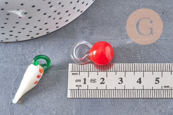 Pendentifs mélangés fruits en verre tchèque 17-36mm, x5 (G4507)