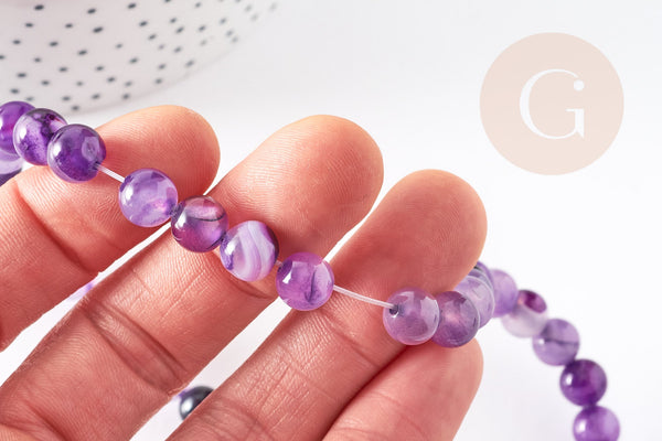 Perla de ágata de rayas moradas, piedra natural de ágata redonda, tira de aproximadamente 45 cuentas, 8 mm, x1 (G3669)