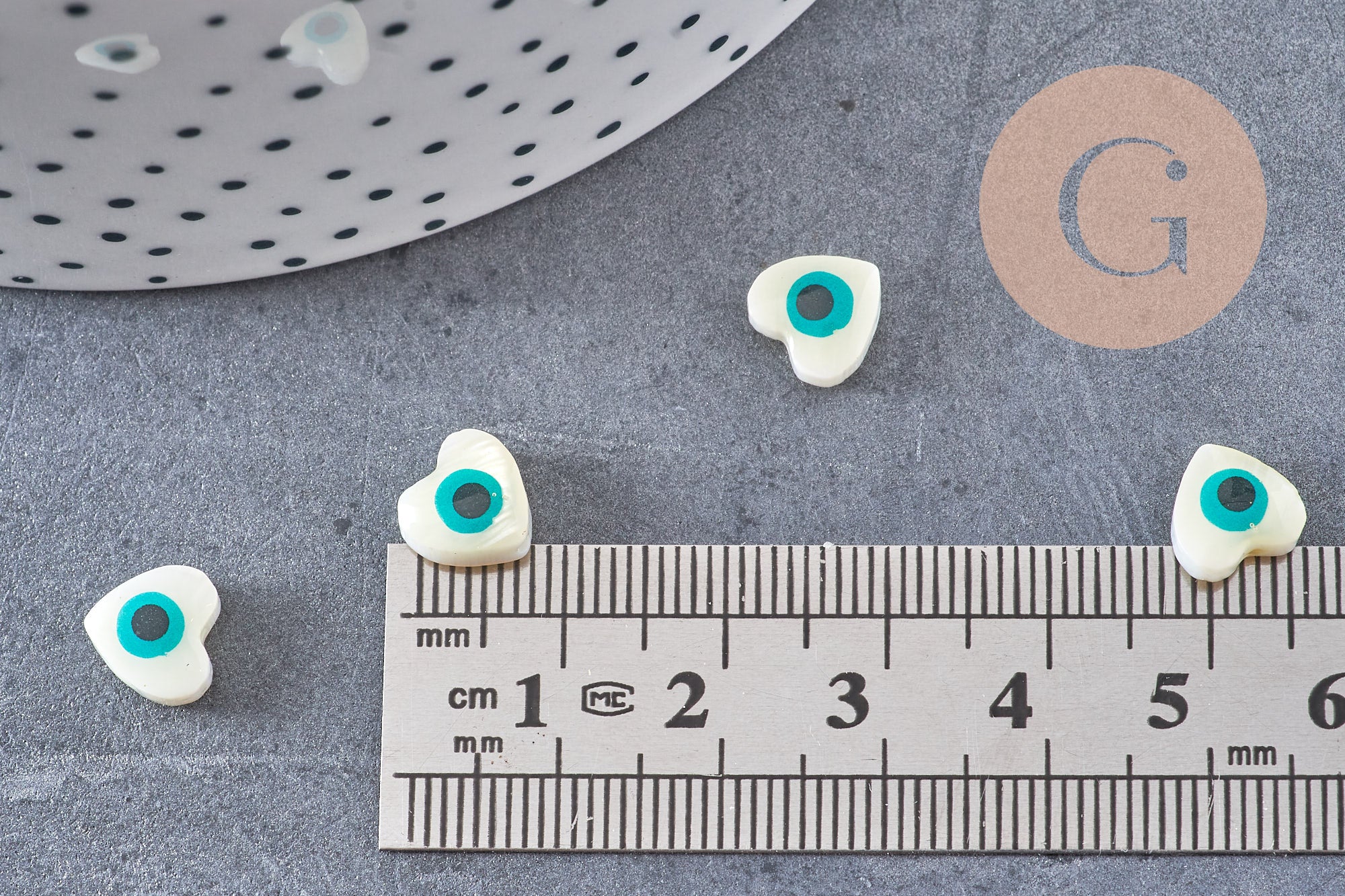 Cuenta de corazón de mal de ojo de nácar blanco, suministros creativos, suerte, cabujón de nácar, gri-gri, 8,5-9 mm, lote de 10